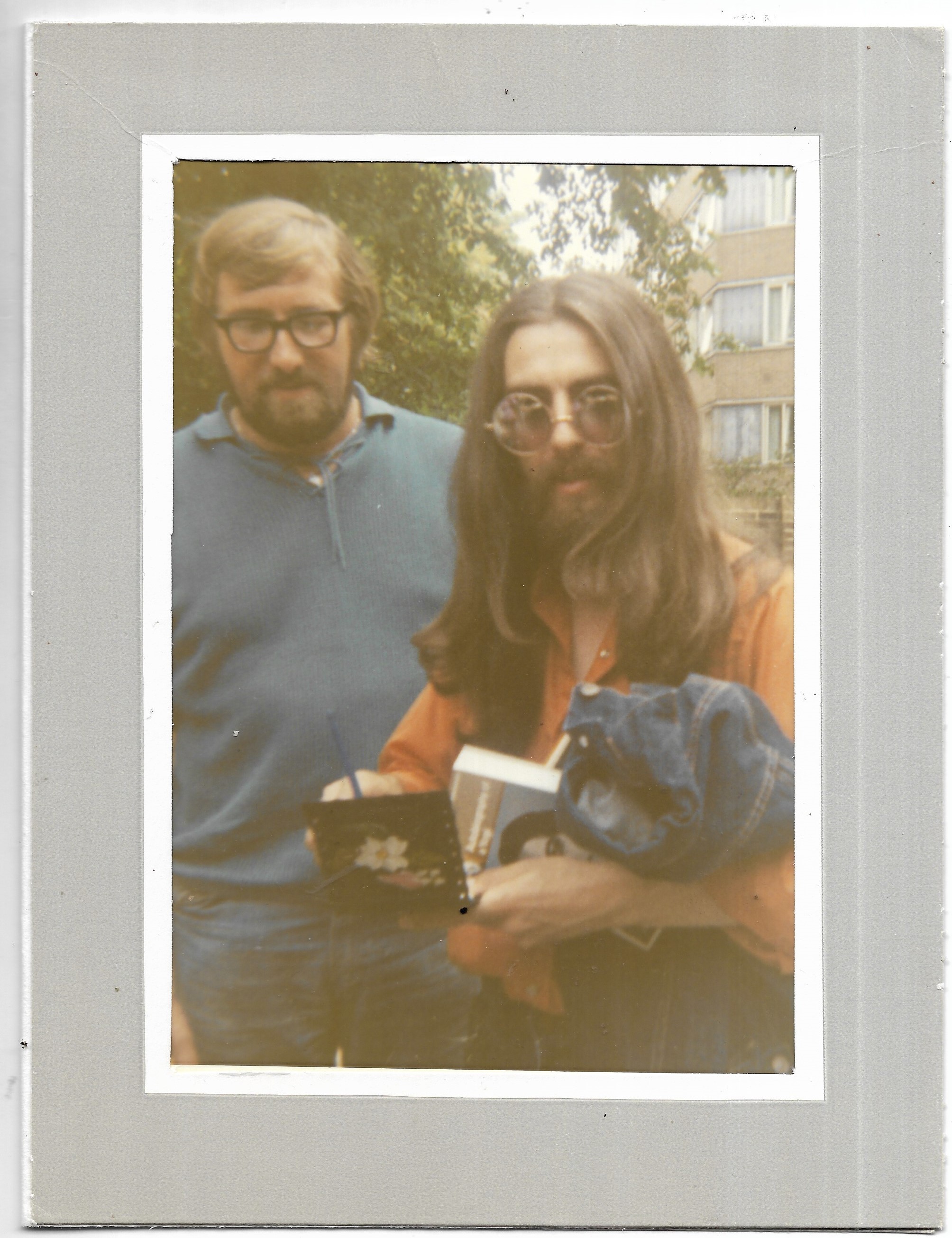 George Harrison and Mal Evans colour fan picture. This item is formerly the property of Beatles Fan Club secretary, Freda Kelly