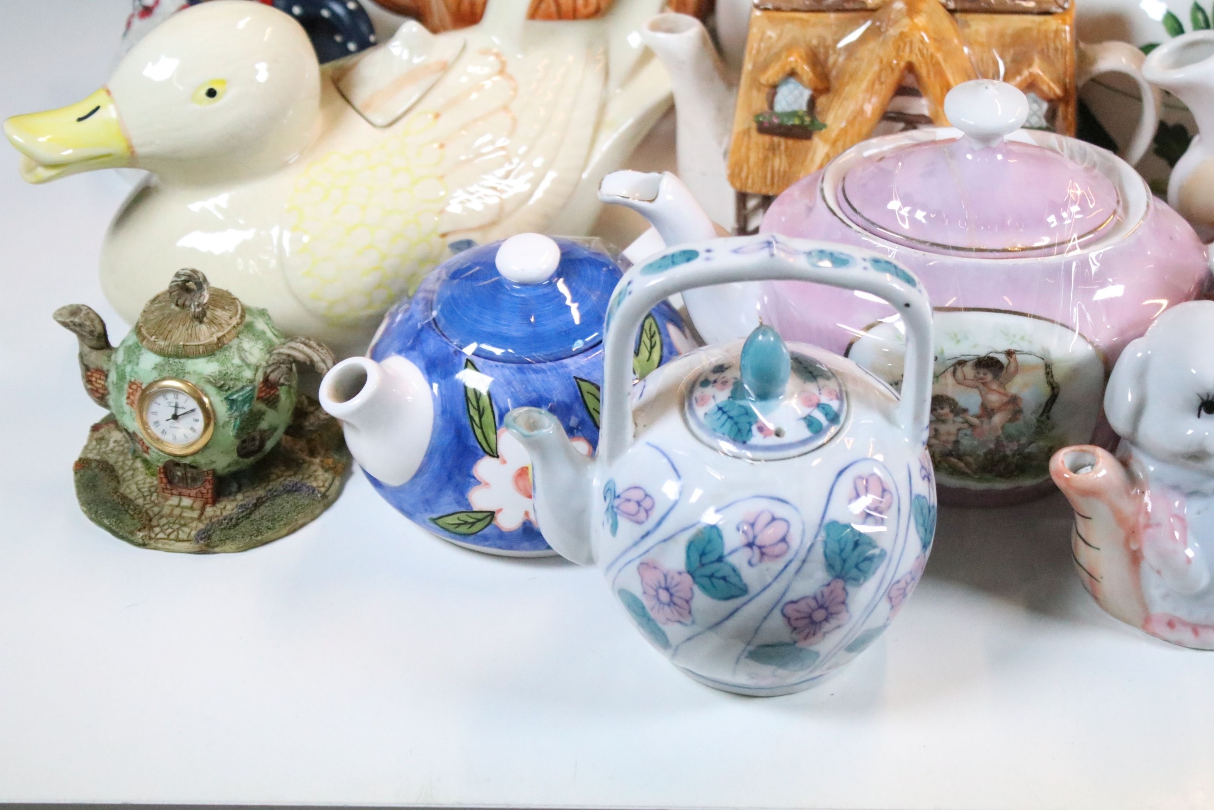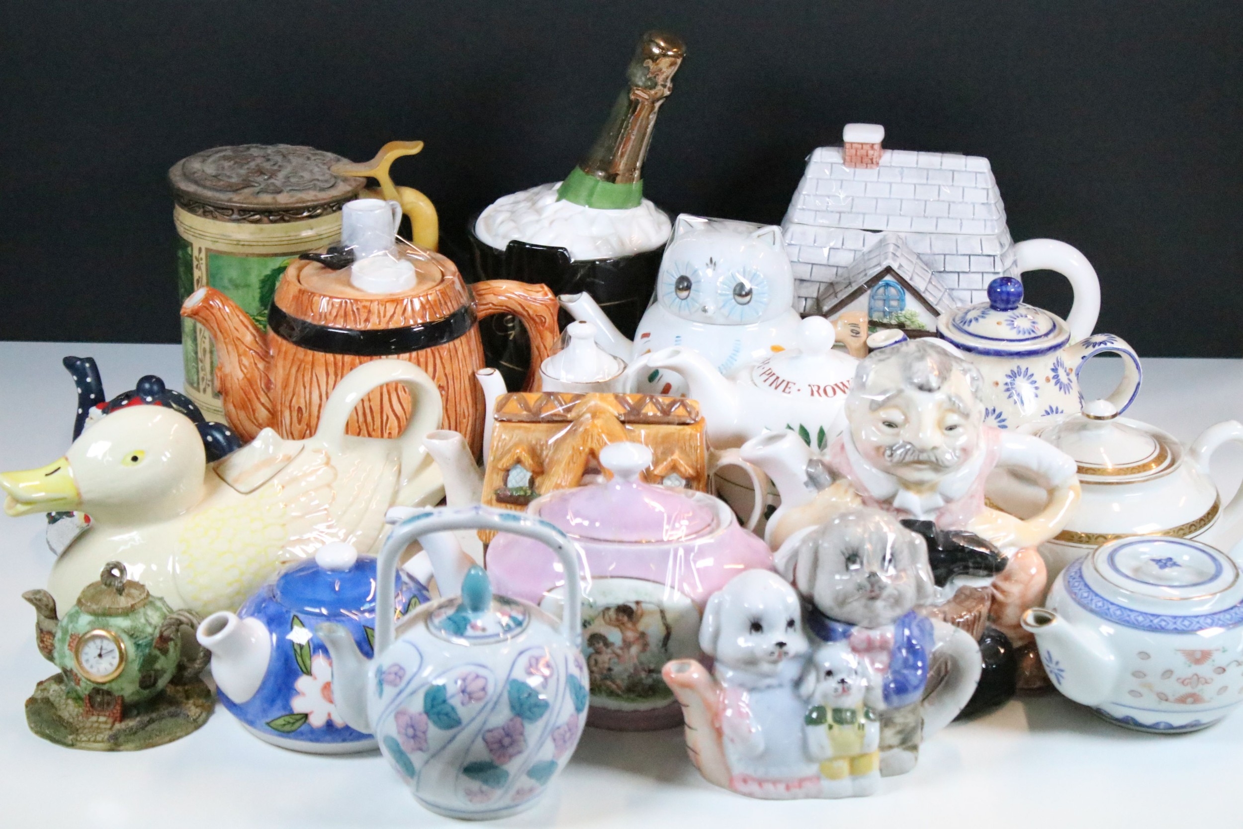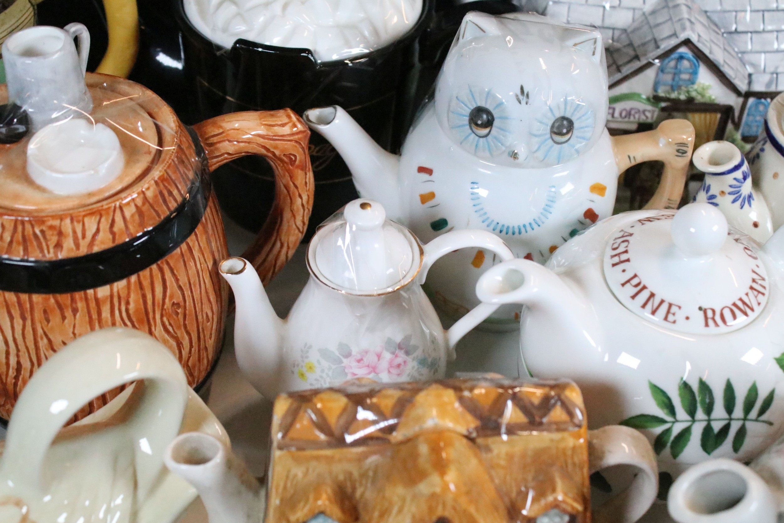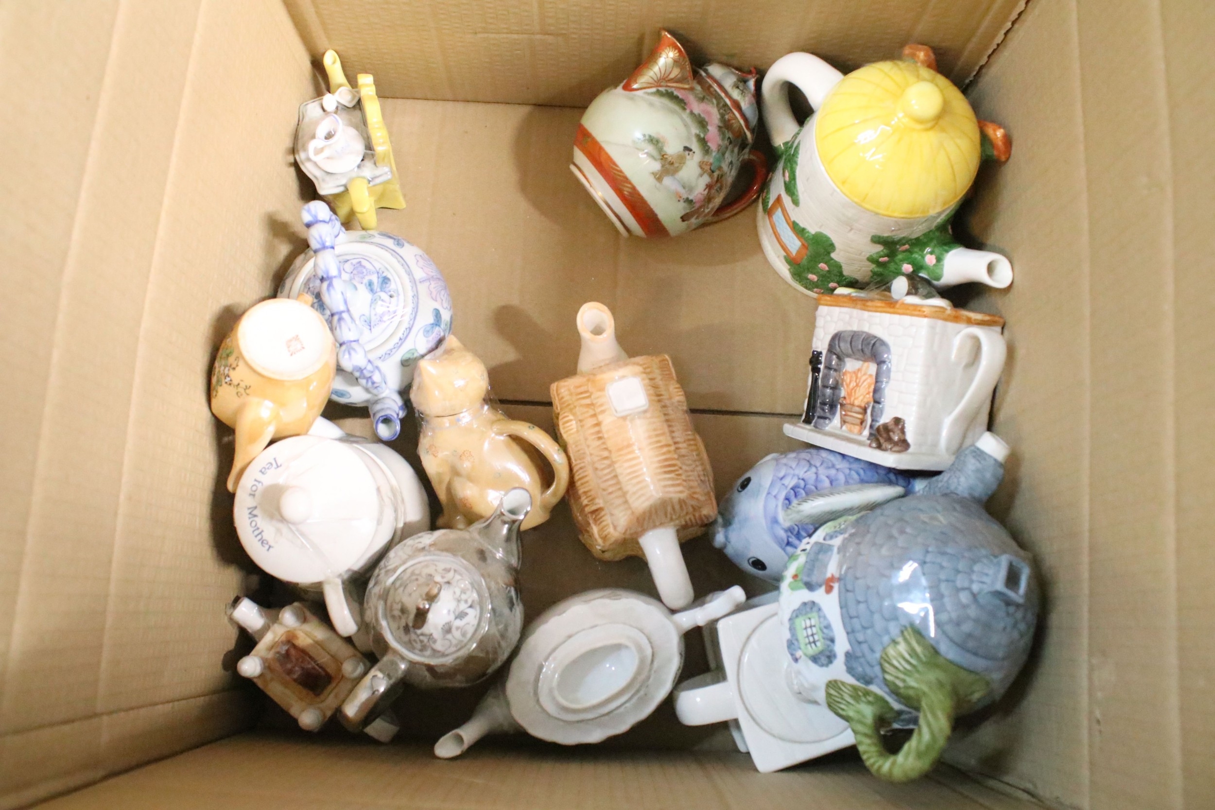 Quantity of ceramic novelty teapots in various forms (1 box)