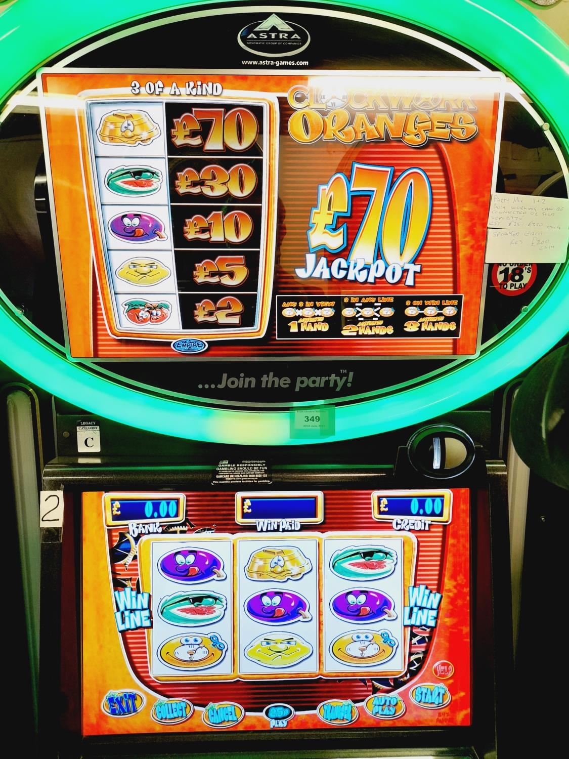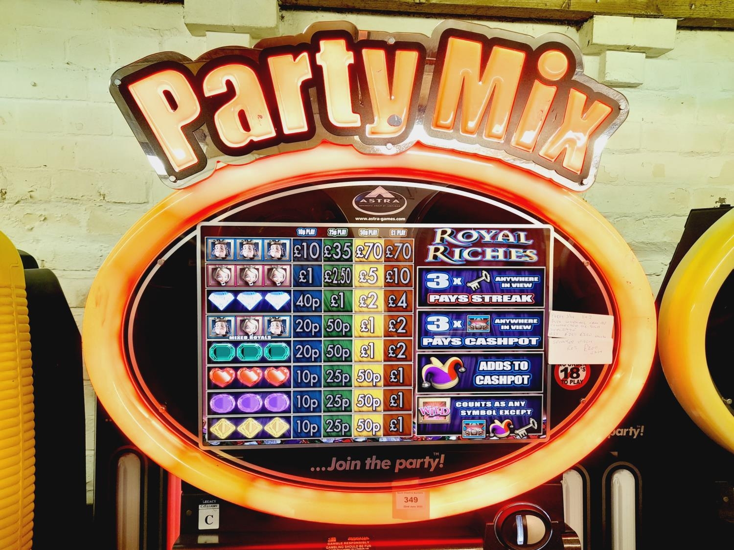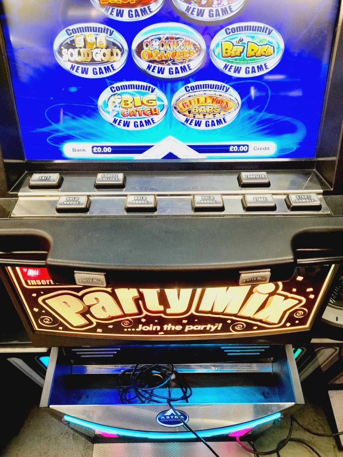 Can be Connected to Following Lot 259 for Game Play. Astra Games Ltd 2010 'Party Mix' Digital Full Size Fruit Machine with Speaker and Keys W/O. Collection Only.