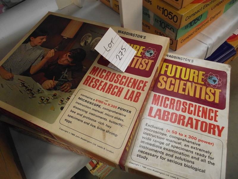 2 Waddingtons future scientist series micro science lab kits, microscopes present but some components may be missing so being sold as seen, collect only
