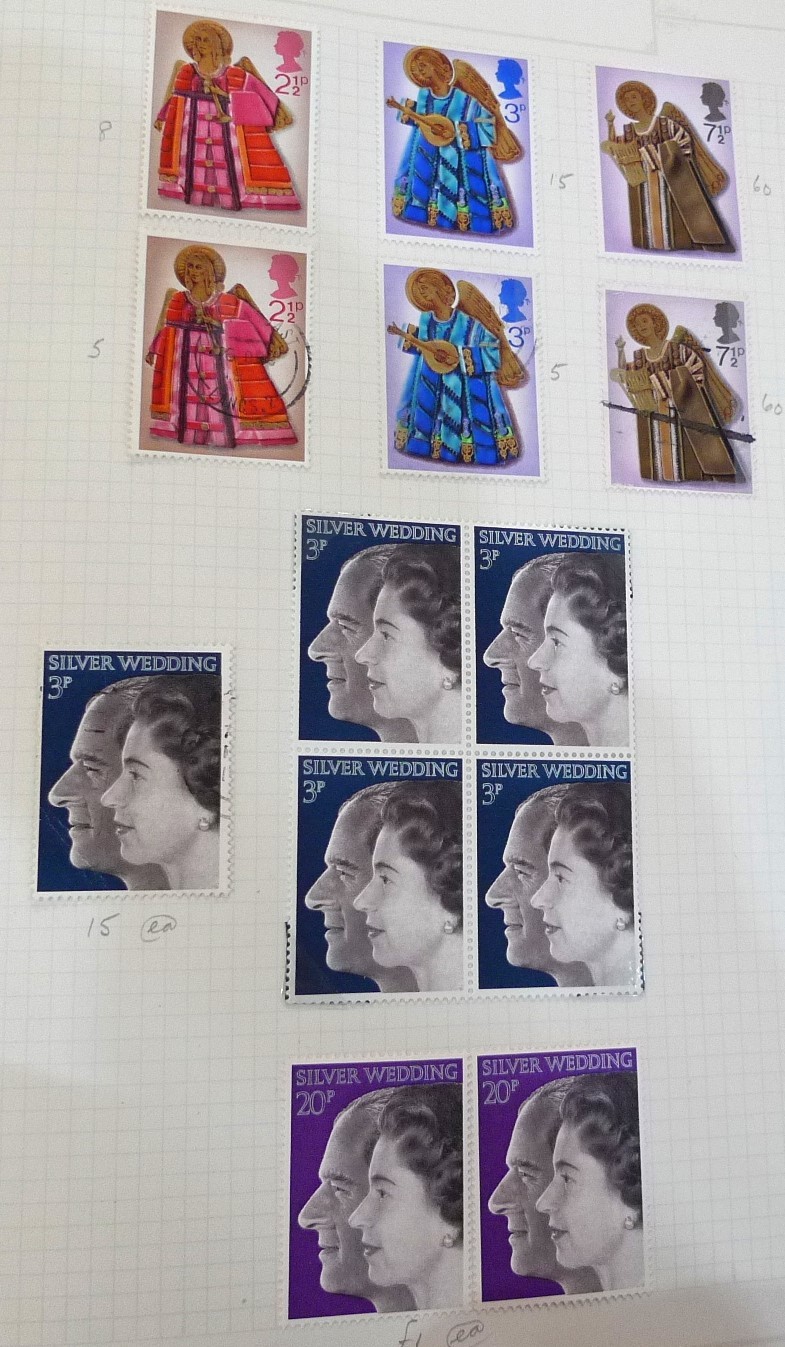 Stamp album 1967 onwards. Used & un-used, mostly GB with many blocks. Also collection of various franked envelopes, loose stamps etc.