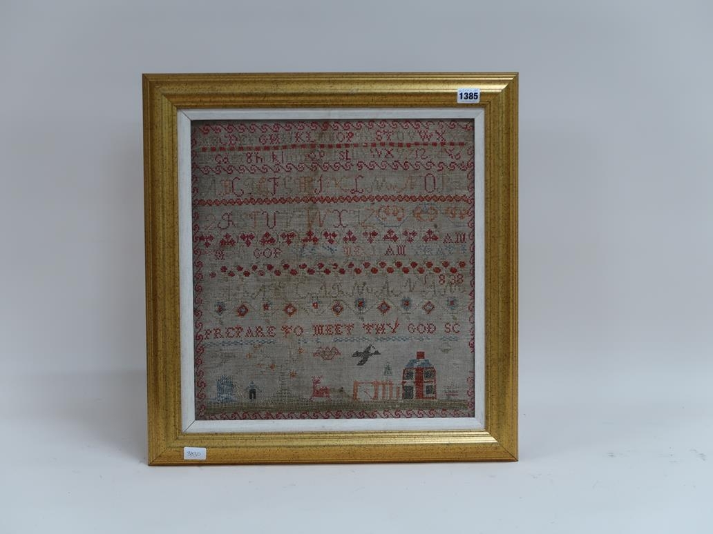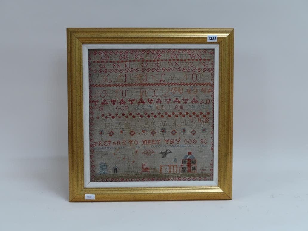 F/G NEEDLEWORK SAMPLER, 42CM X 40CM