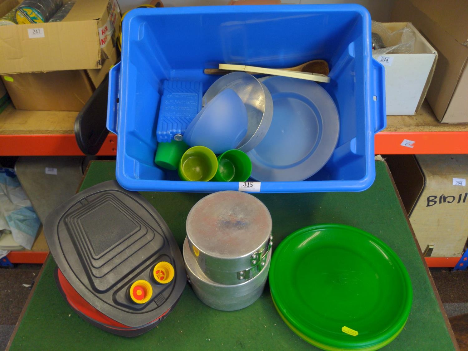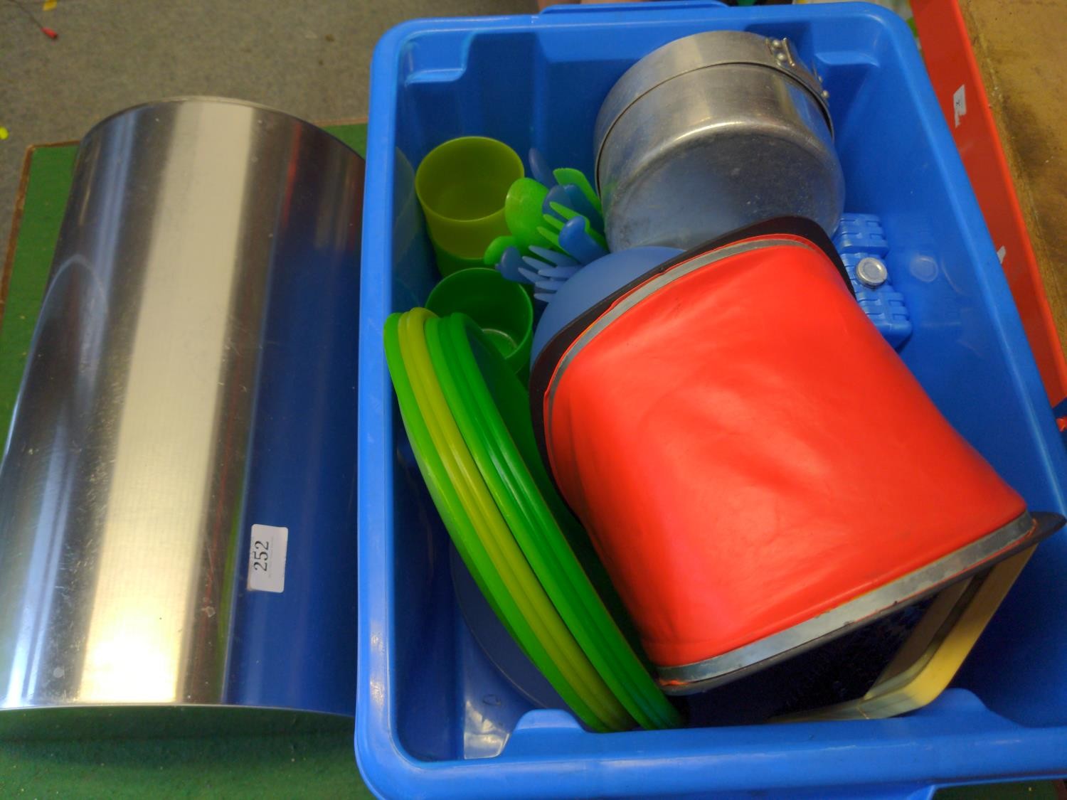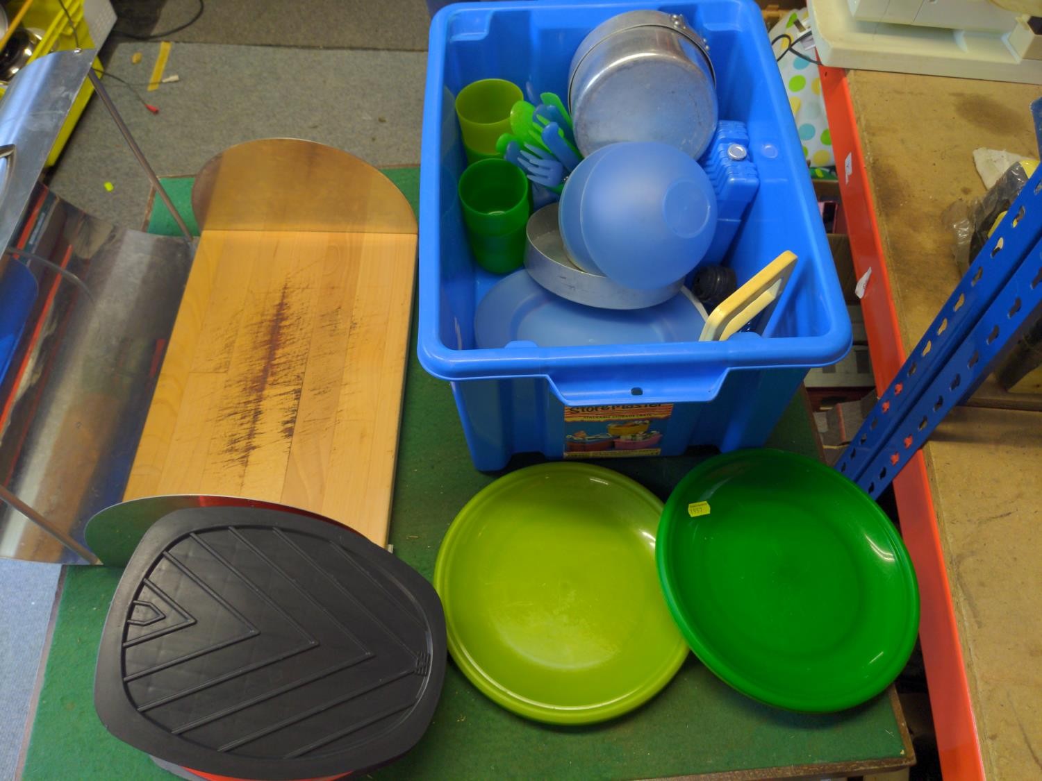 S/S Bread bin plus grater, camping plastic plates and cups etc..
