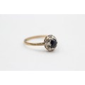 9ct gold vintage sapphire & diamond halo dress ring (1.4g)