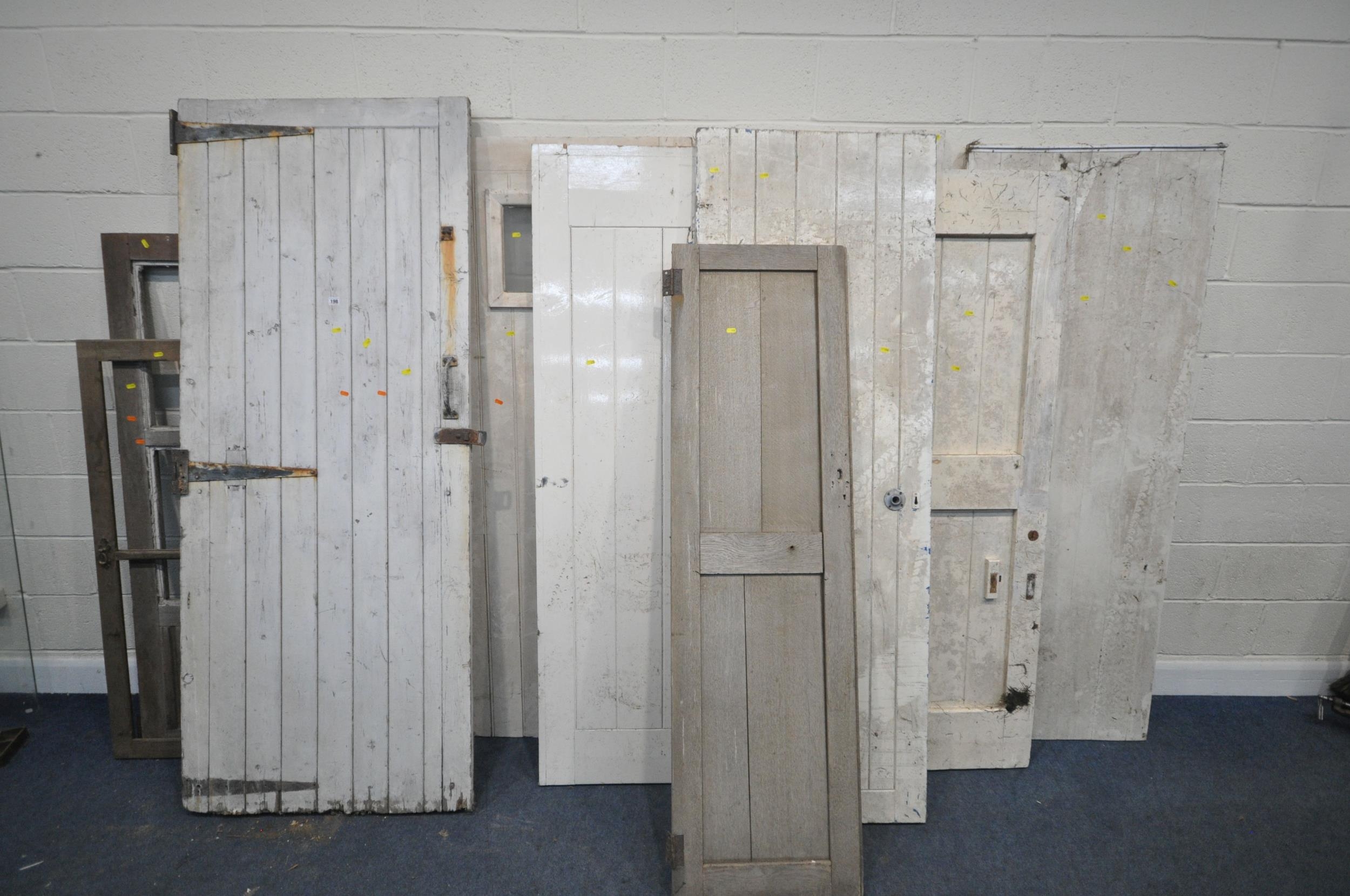 TEN DOORS, varying in size and style, some painted, condition report: cannot guarantee the integrity of the doors due to them being in storage, marks, scuffs, stains, discolouration, possible woodworm, other wear and usage (10)