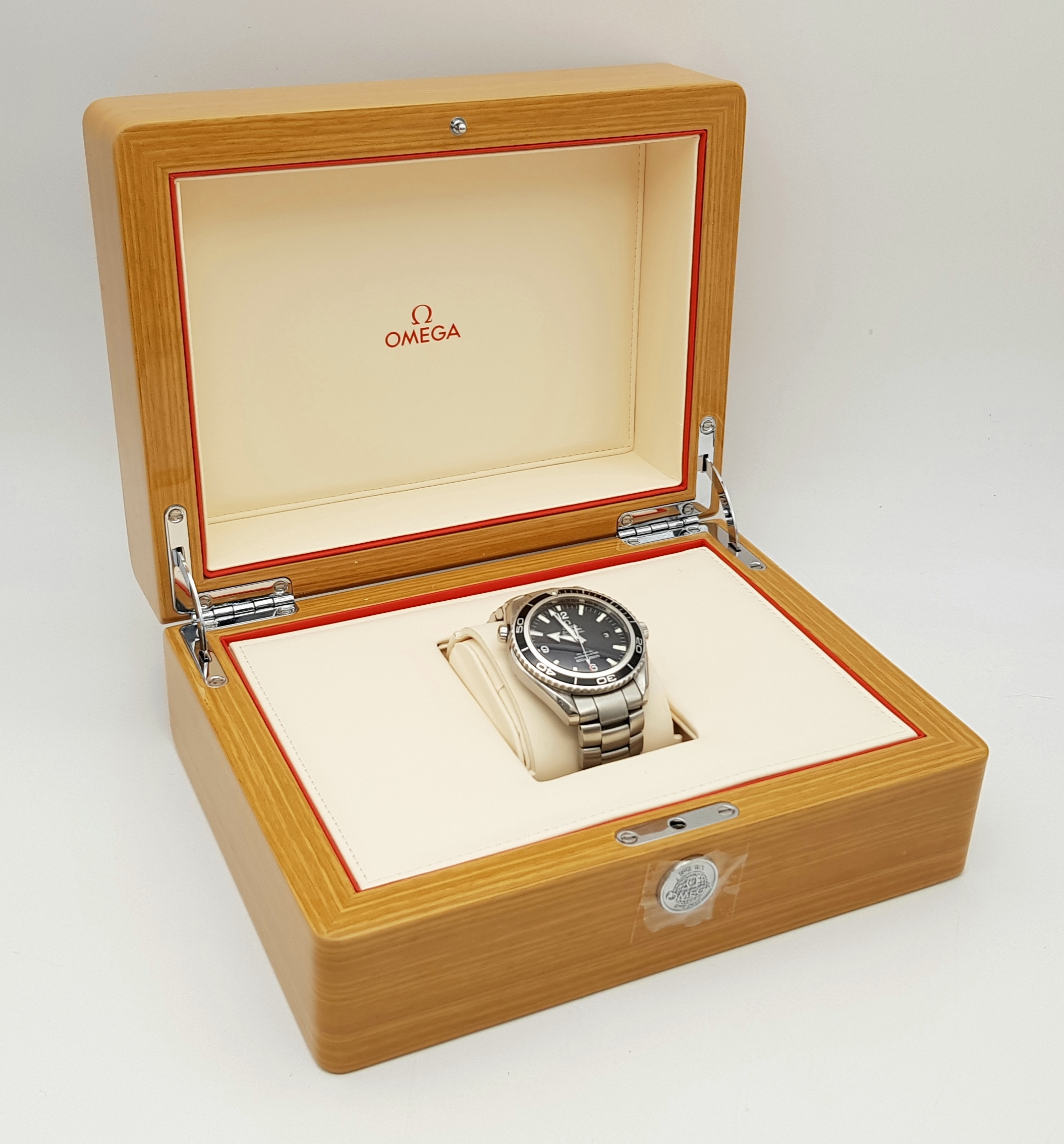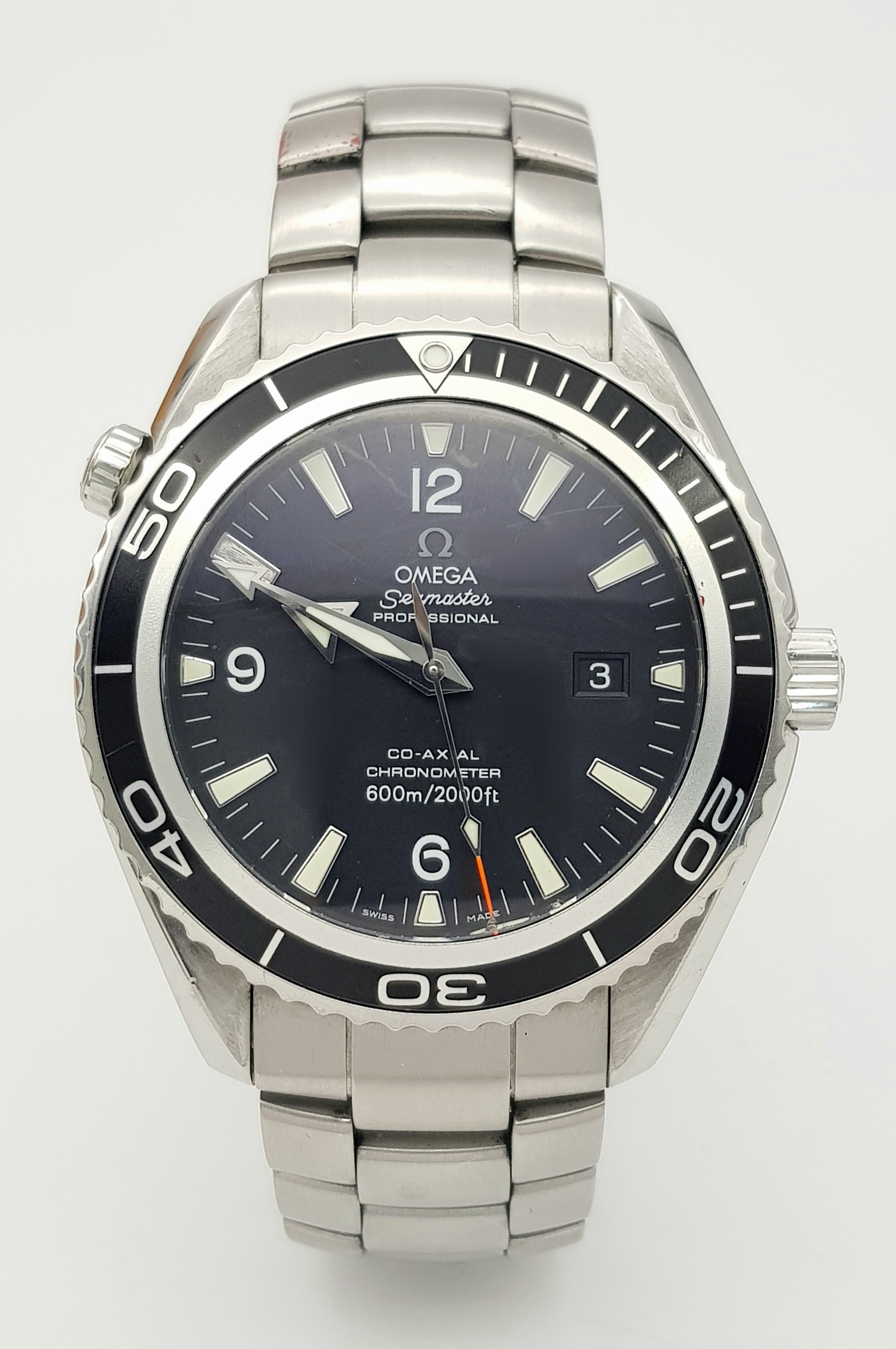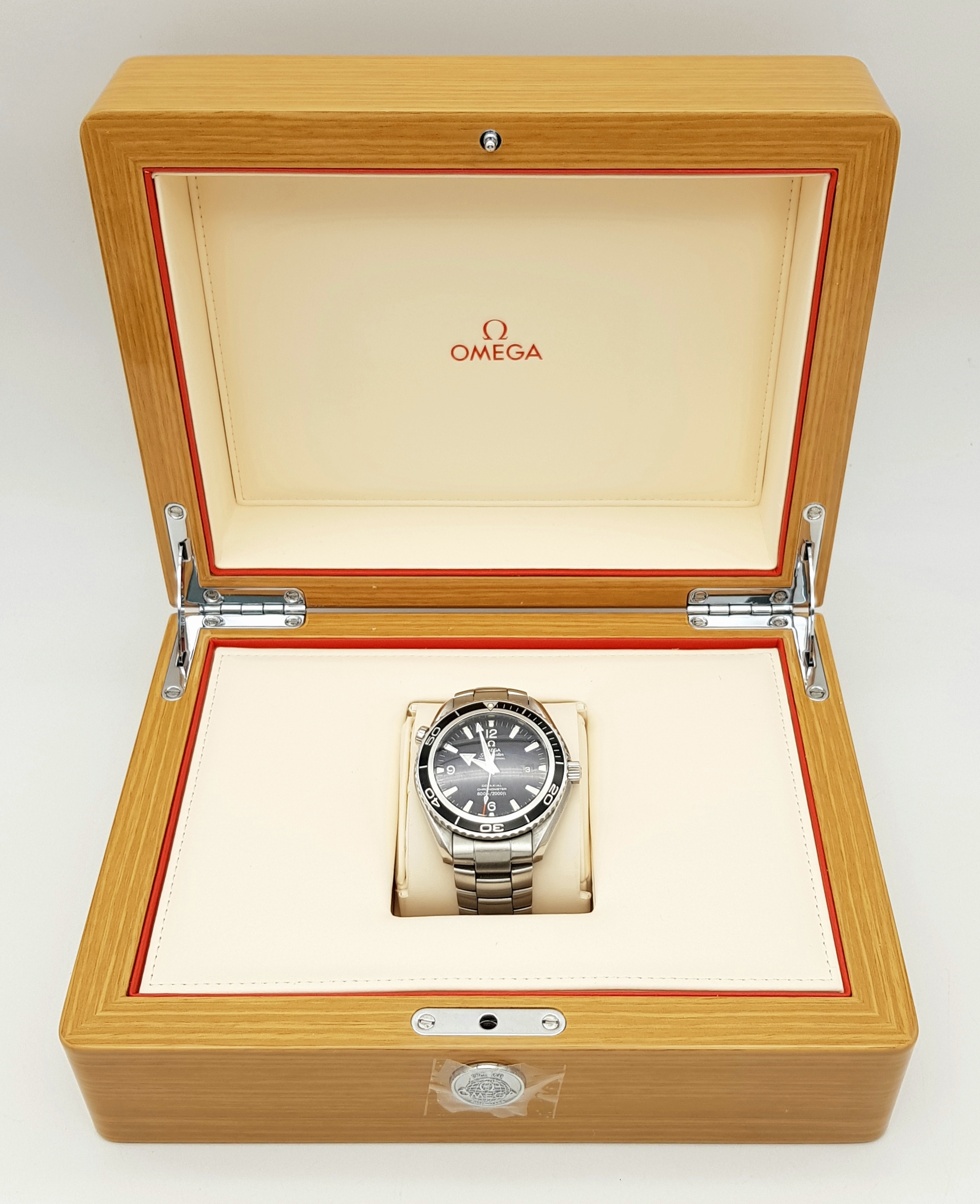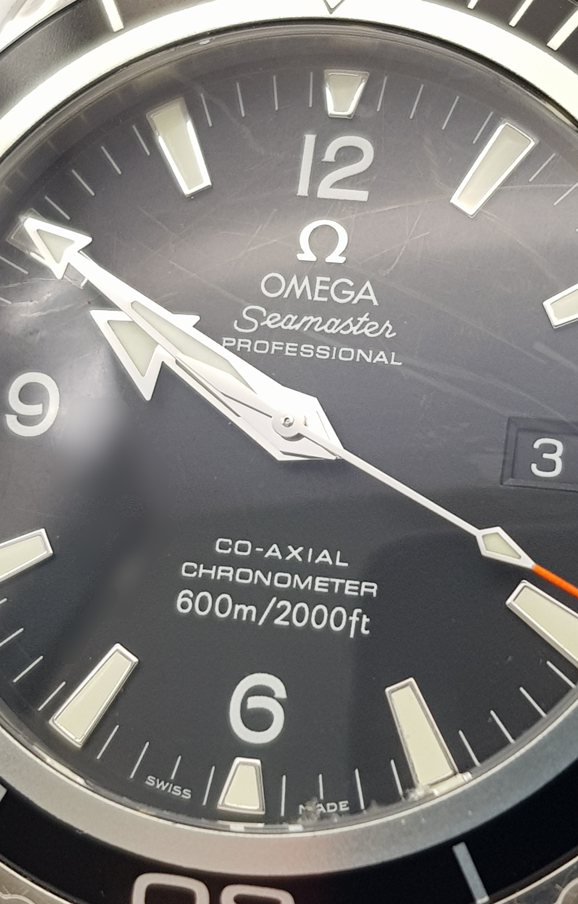 THE OMEGA "SEAMASTER"PROFESSIONAL CHRONOMETER WATCH IN STAINLESS STEEL AND HAVING A BLACK DIAL , ROTATING BEZEL ,WATERPROOF TO 2000FT AND COMING IN THE ORIGINAL OMEGA POLISHED WOOD BOX WITH PAPERS. A FABULOUS REAL DIVERS WATCH! PLEASE NOTE, THE ENAMEL ON THE 10 O'CLOCK MARKER HAS COME OFF AND IS LOOSE BETWEEN THE WATCH FACE AND GLASS.