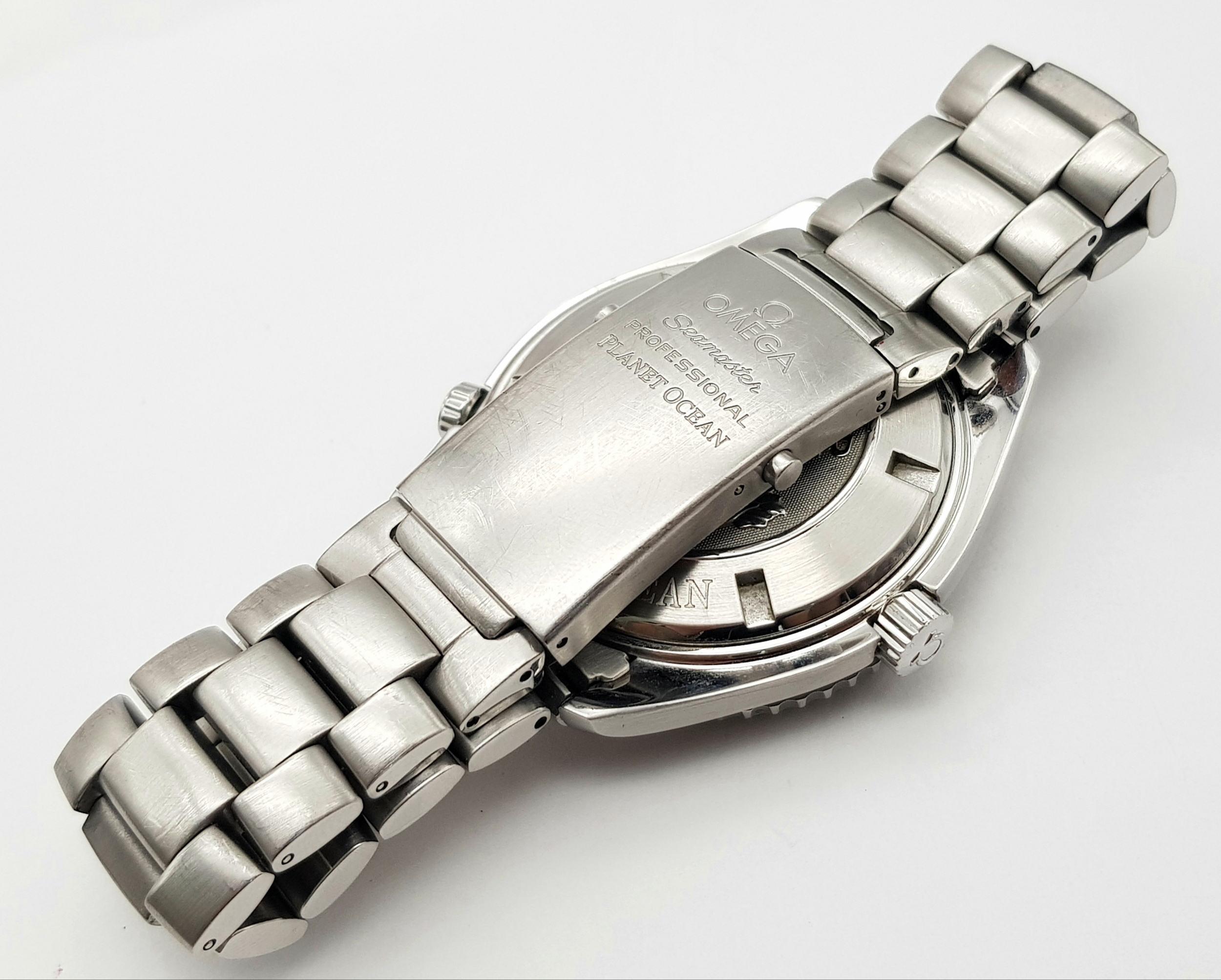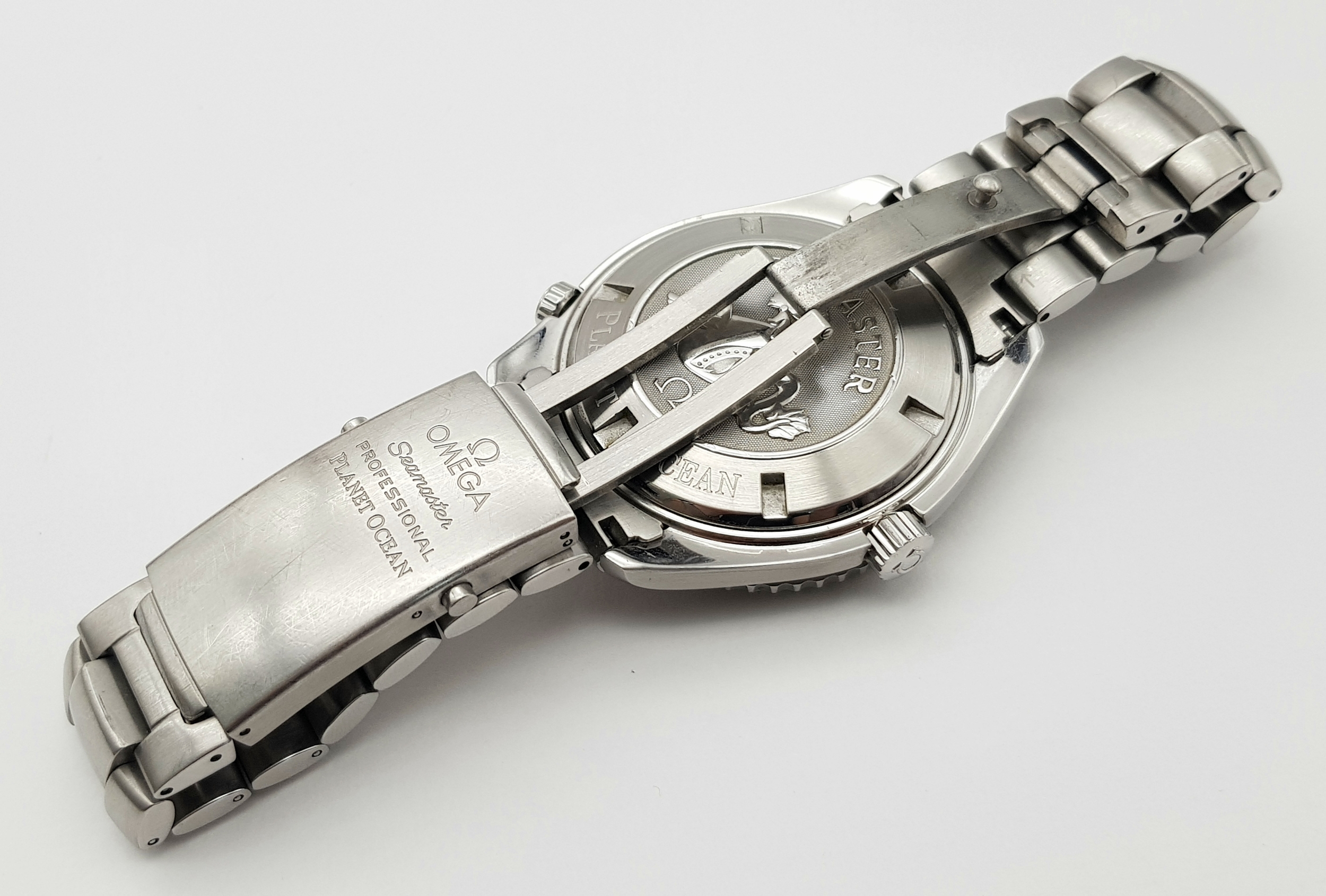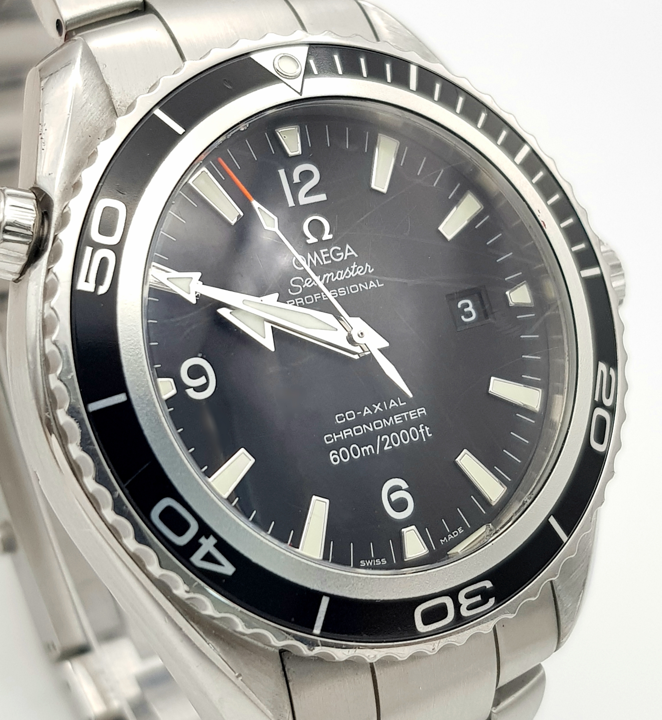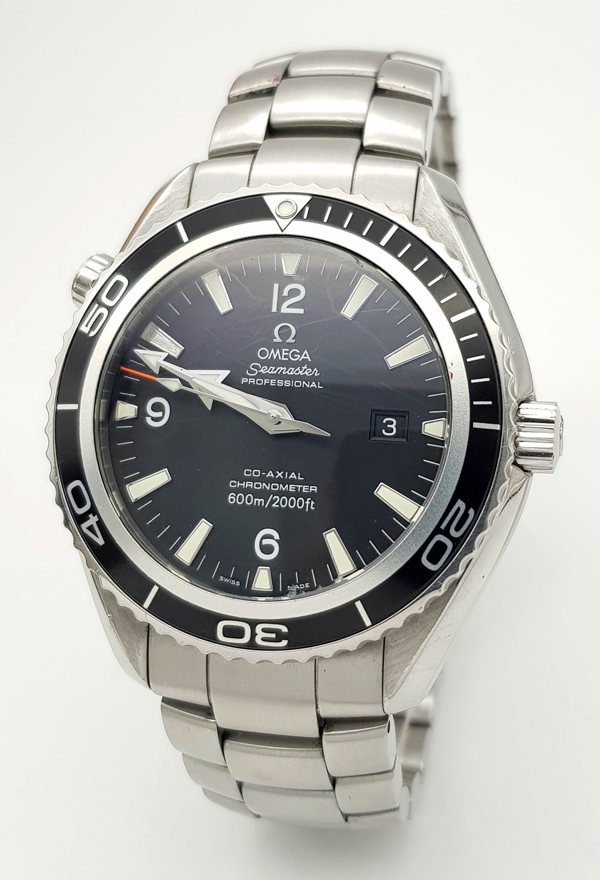 THE OMEGA "SEAMASTER"PROFESSIONAL CHRONOMETER WATCH IN STAINLESS STEEL AND HAVING A BLACK DIAL , ROTATING BEZEL ,WATERPROOF TO 2000FT AND COMING IN THE ORIGINAL OMEGA POLISHED WOOD BOX WITH PAPERS. A FABULOUS REAL DIVERS WATCH! PLEASE NOTE, THE ENAMEL ON THE 10 O'CLOCK MARKER HAS COME OFF AND IS LOOSE BETWEEN THE WATCH FACE AND GLASS.
