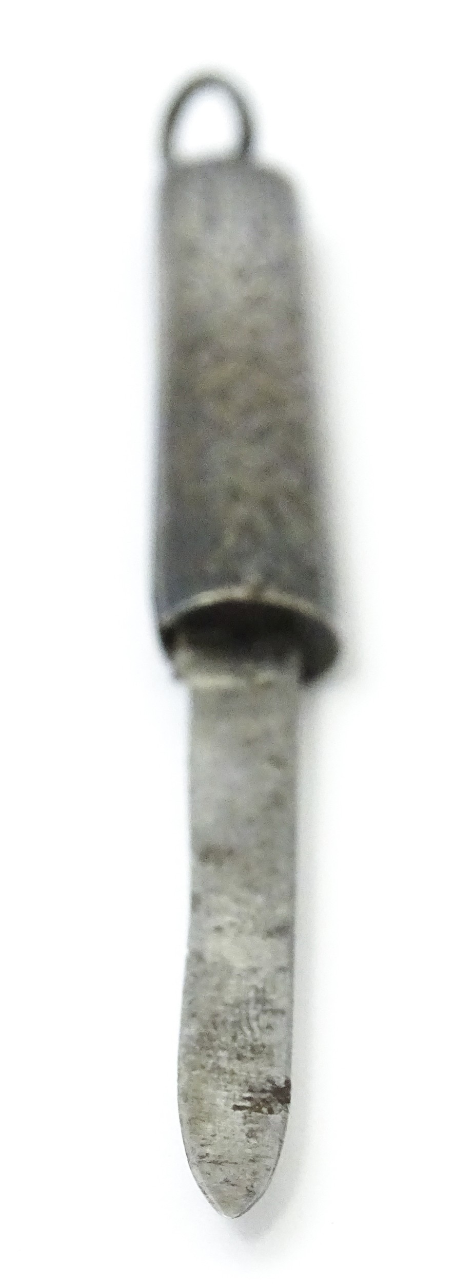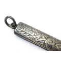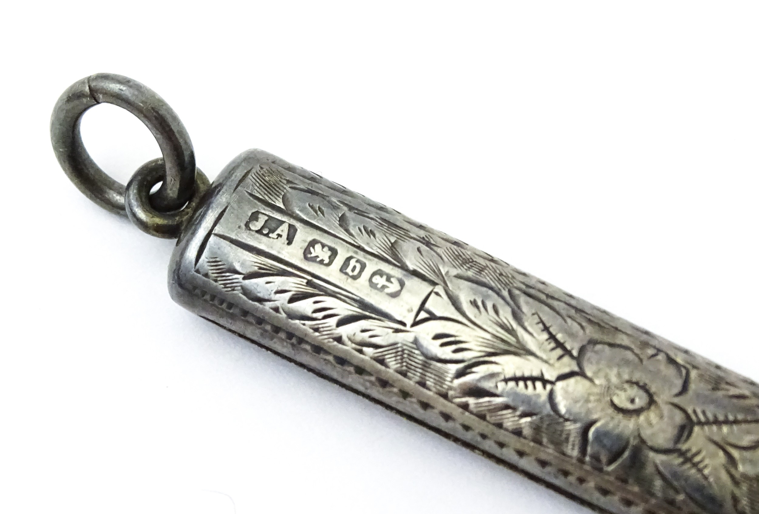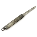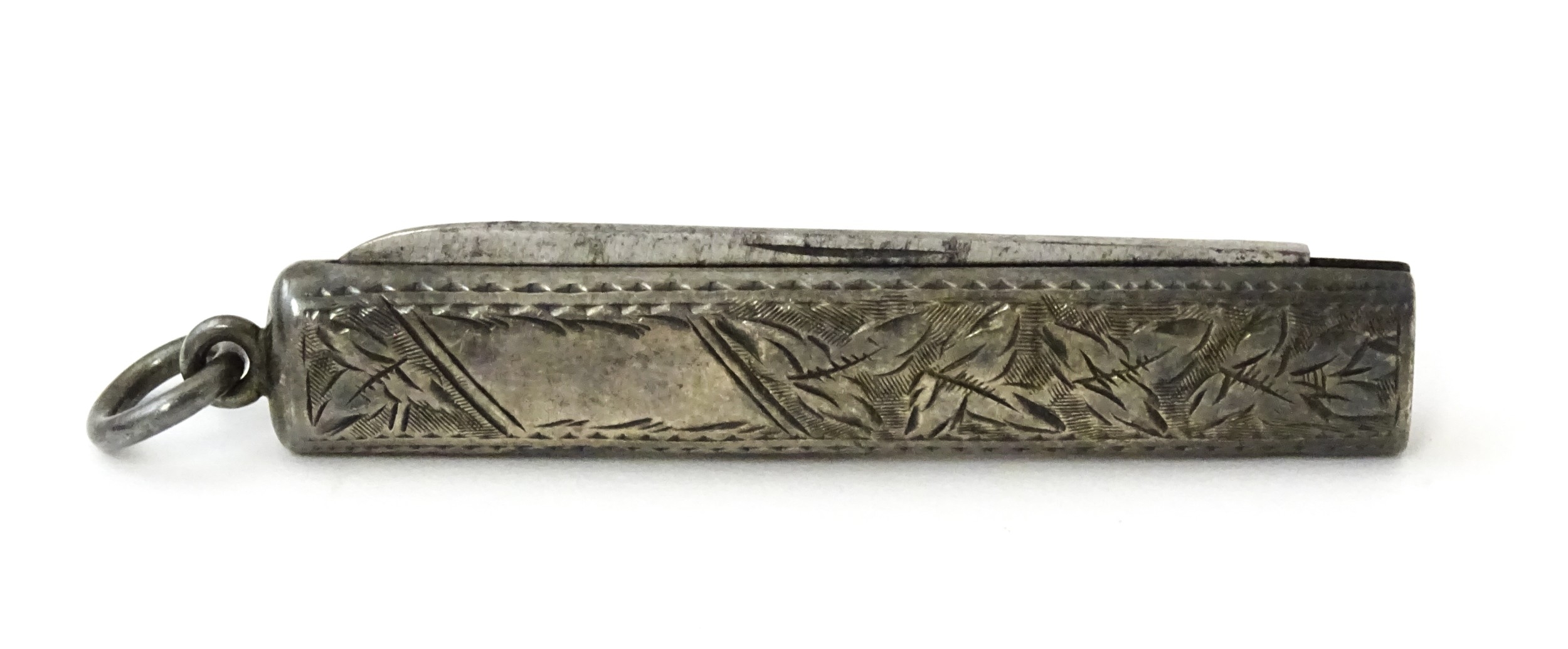 A Victorian silver handled folding knife, the handle with engraved floral and foliate detail and hallmarked Birmingham 1895 maker J.A. Approx 4" long overall.