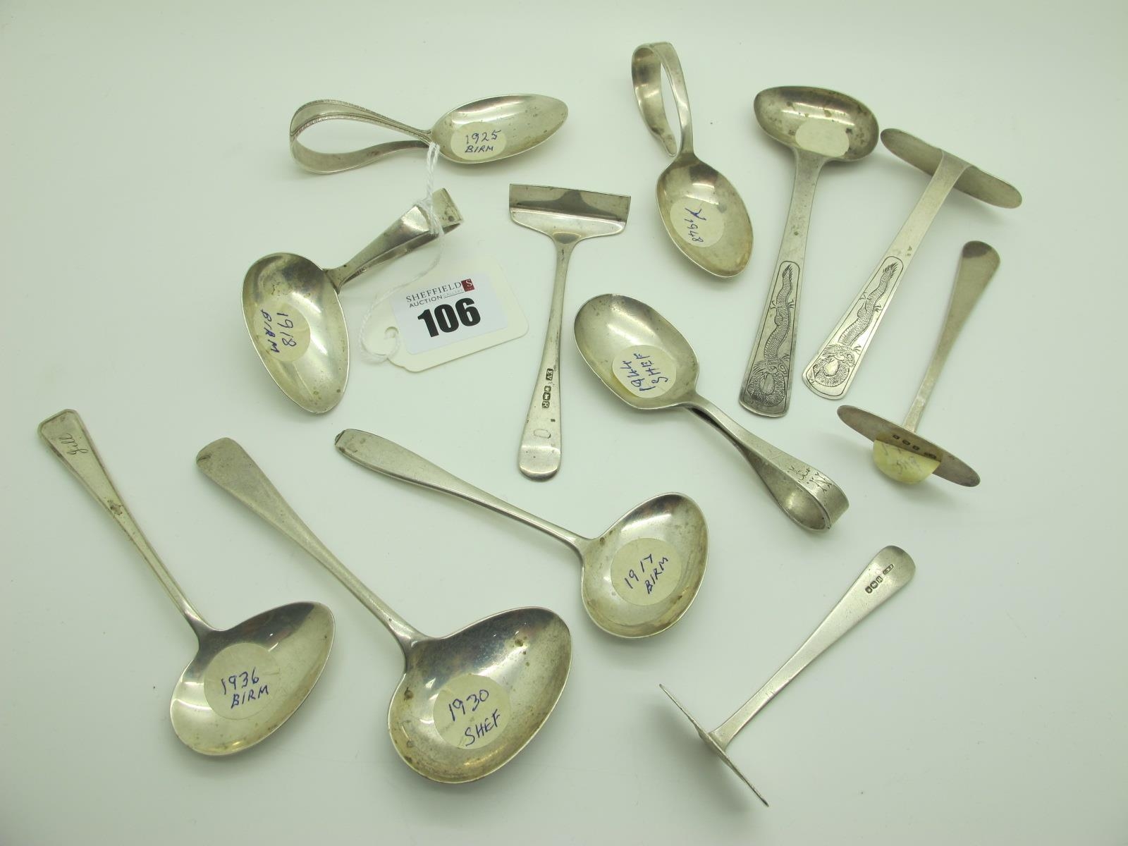 A Collection of Assorted Hallmarked Silver Baby's Spoons and Pushers, (various makers and dates); together with a Chinese spoon and pusher (stamped marks).