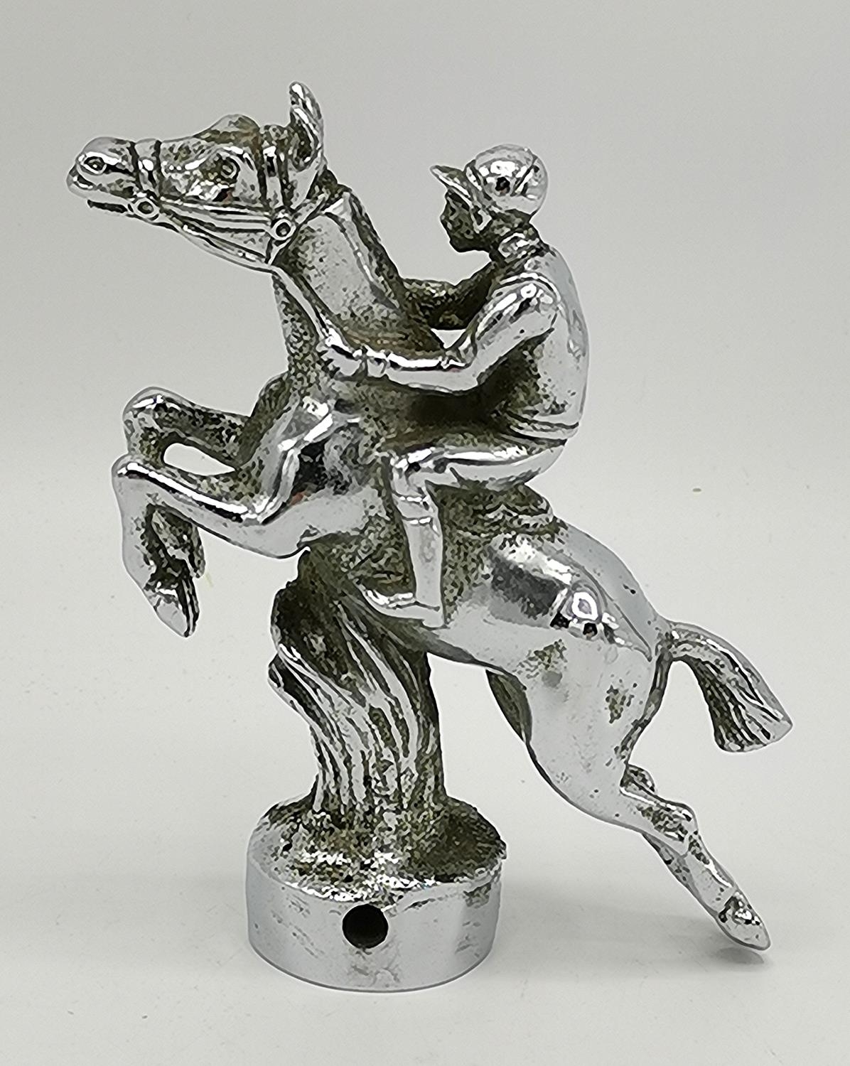 CHROME HORSE & JOCKEY CAR BONNET/ HOOD ORNAMENT (Old)