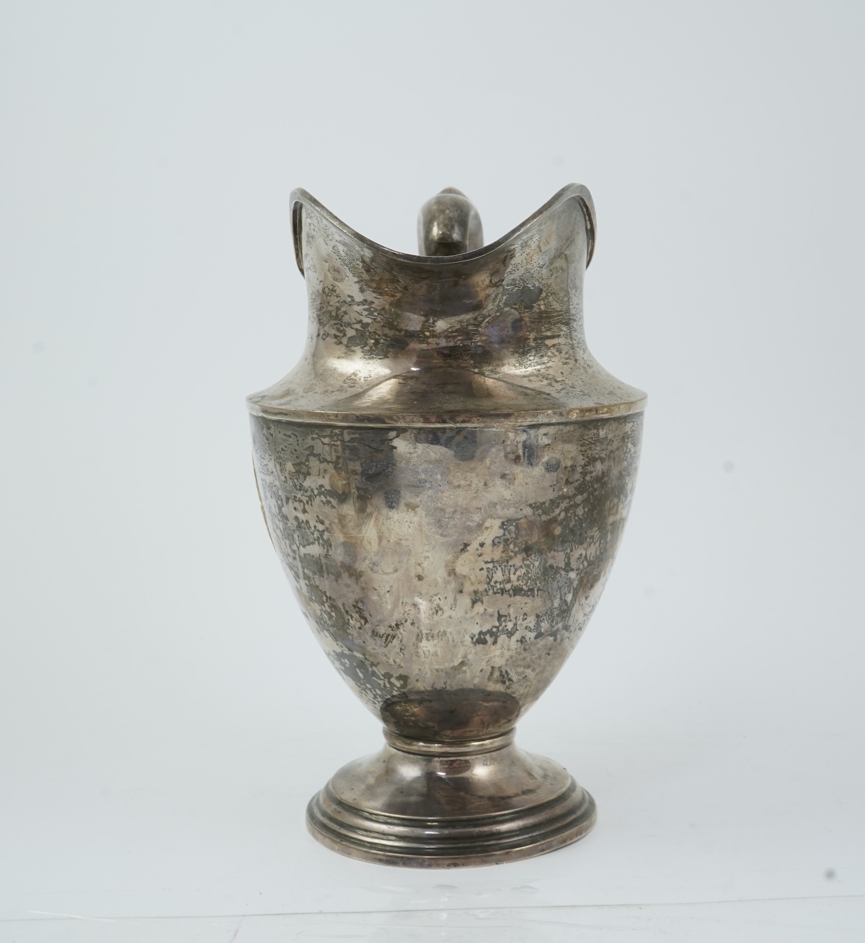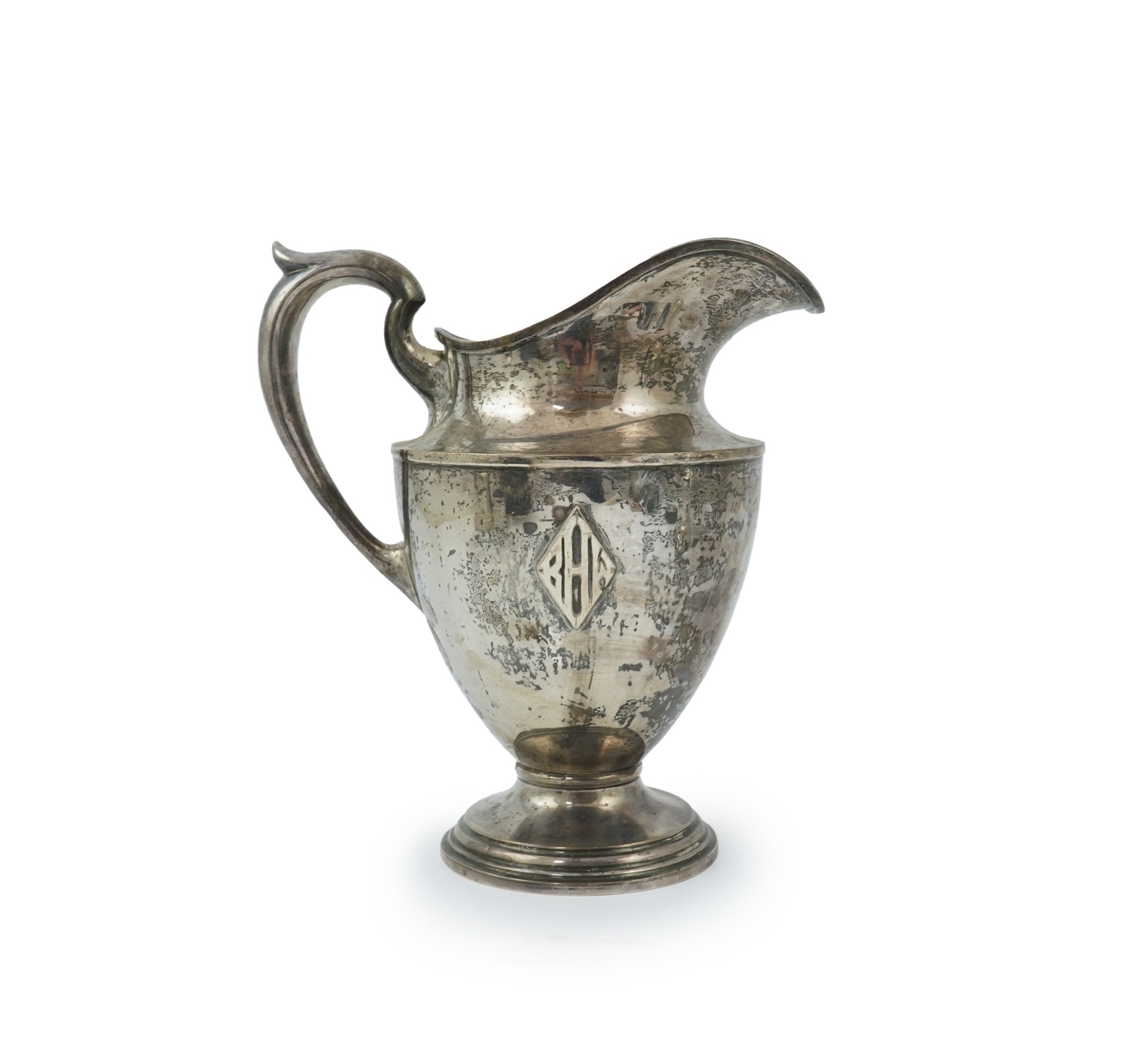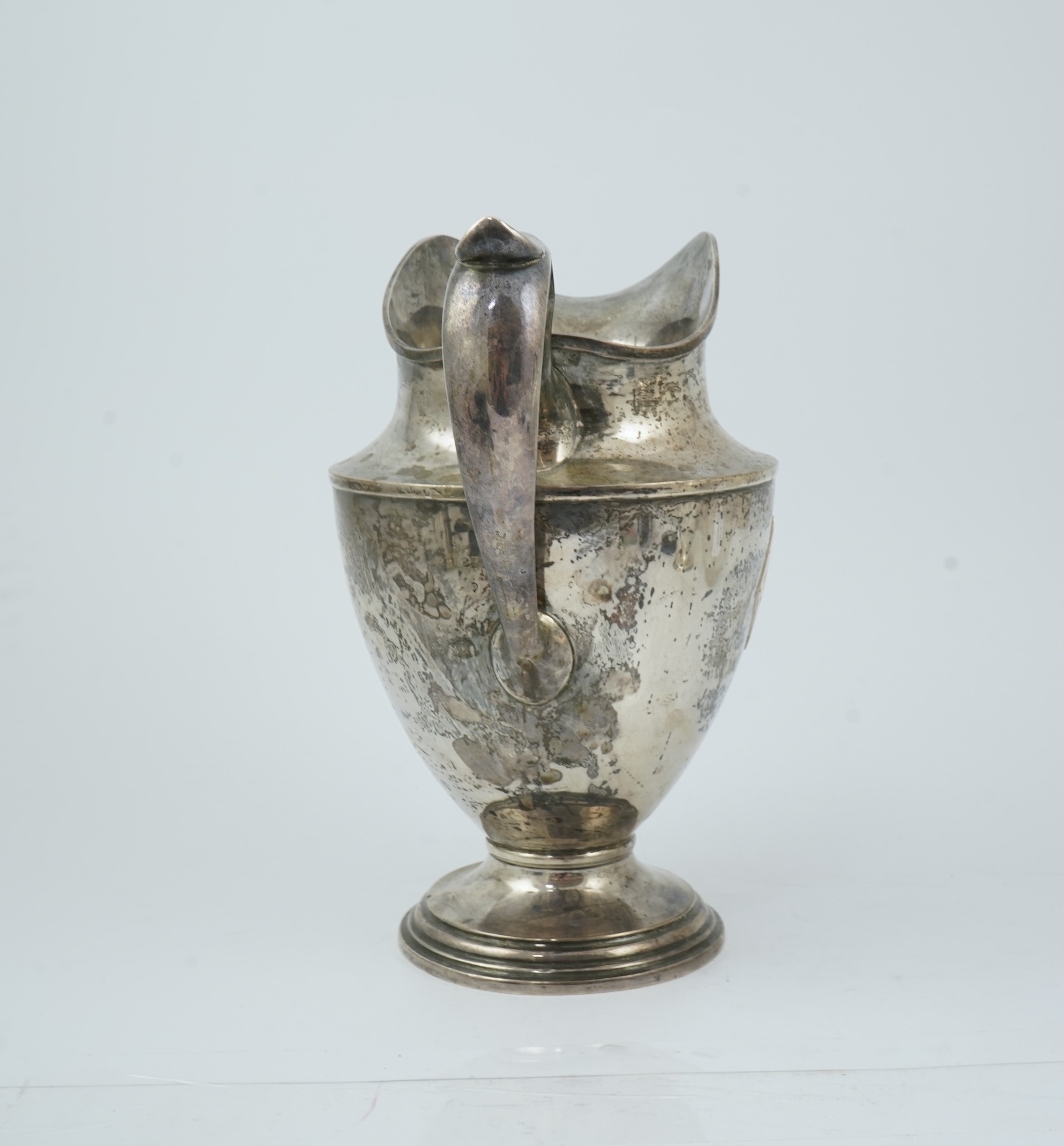 An early 20th century North American sterling silver large jug by Schofield & Co, of vase form with applied monogram, on circular foot, 25.5cm, 21.8oz.