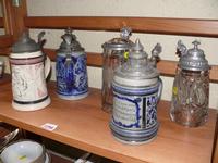 A mixed lot, to include a small quantity of Oriental pottery and porcelain; a Victorian pewter quart measure; a pair of 19th century blue and white leaf dishes; an engraved glass beaker; and others.