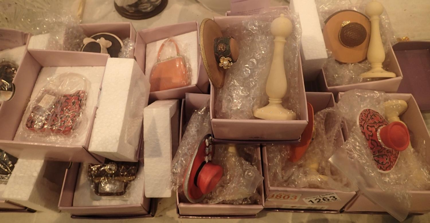 Collection of mixed boxed Leonardo ceramics including bags and hats. Not available for in-house P&P, contact Paul O'Hea at Mailboxes on 01925 659133