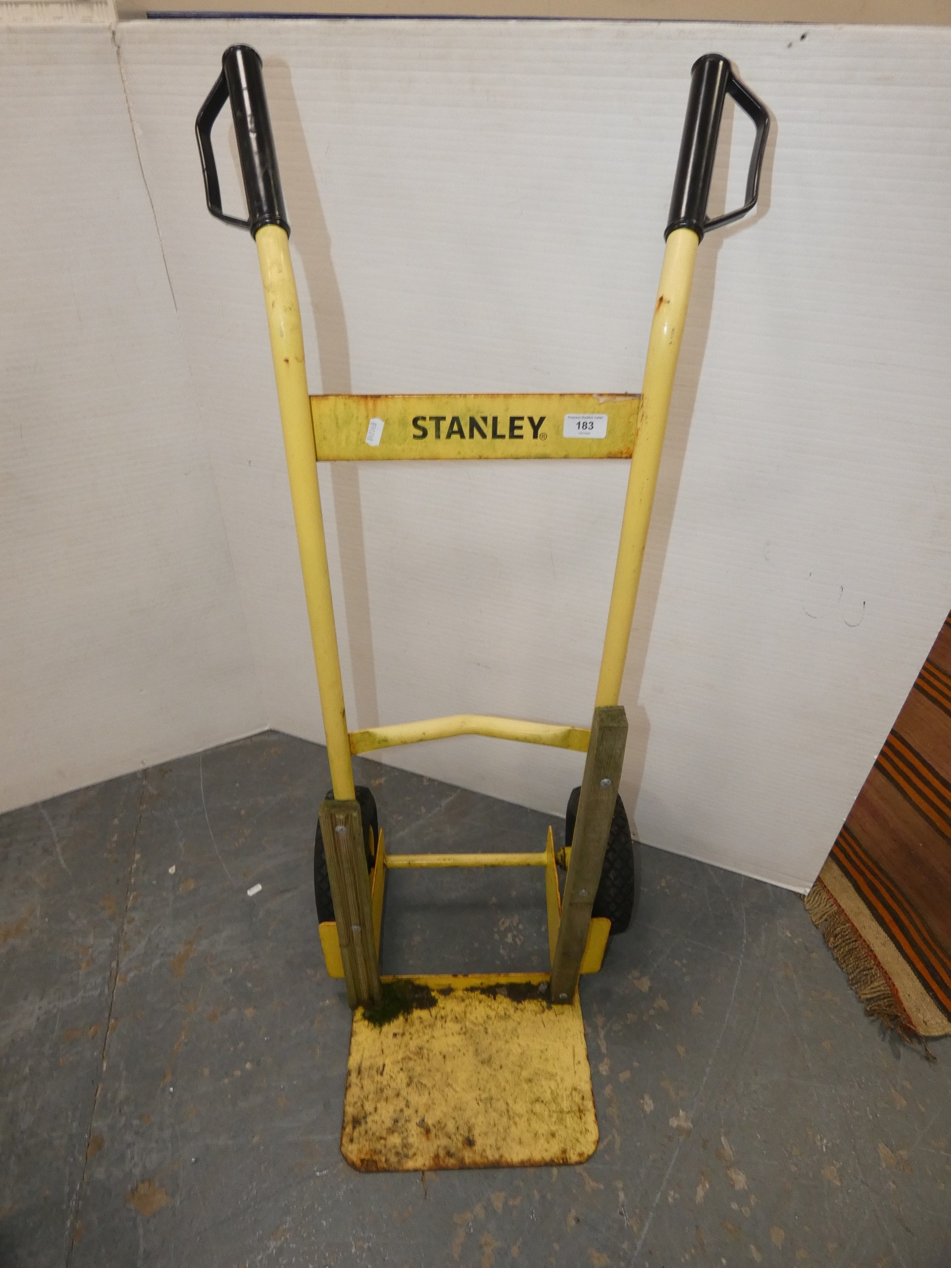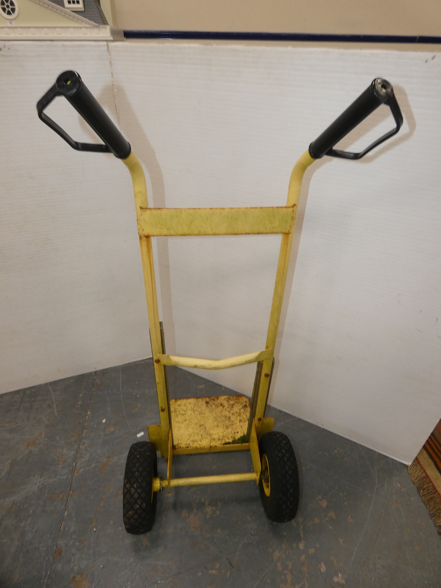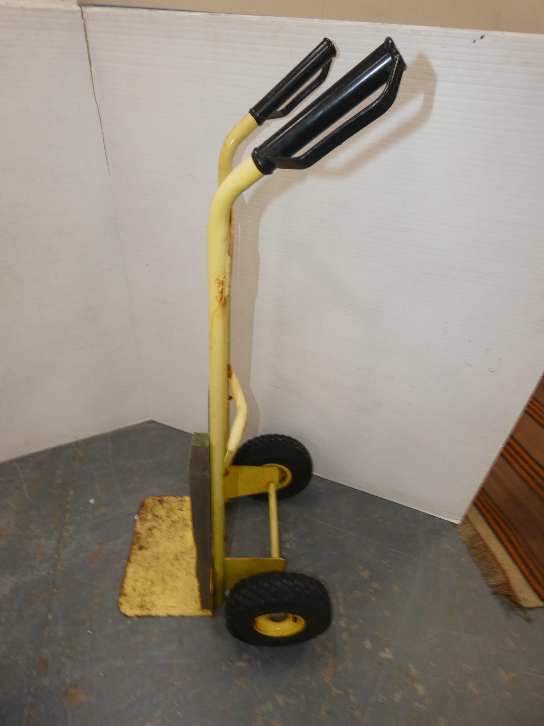 Stanley painted yellow metal sack barrow.