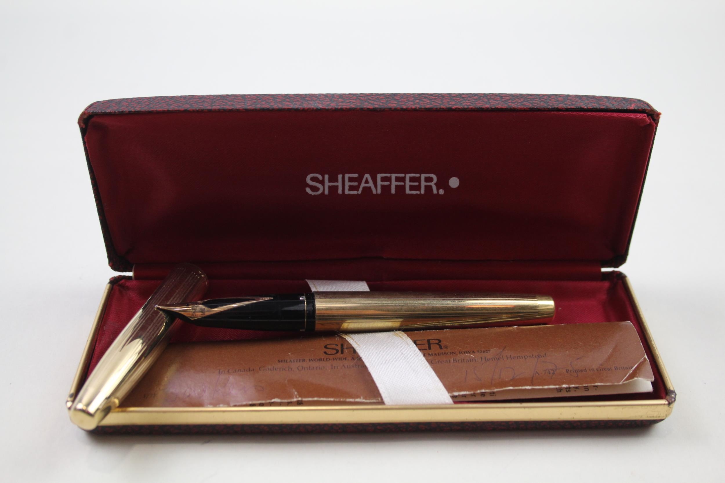 Vintage SHEAFFER Imperial Gold Plated Fountain Pen w/ 14ct Gold Nib WRITING Box