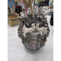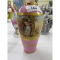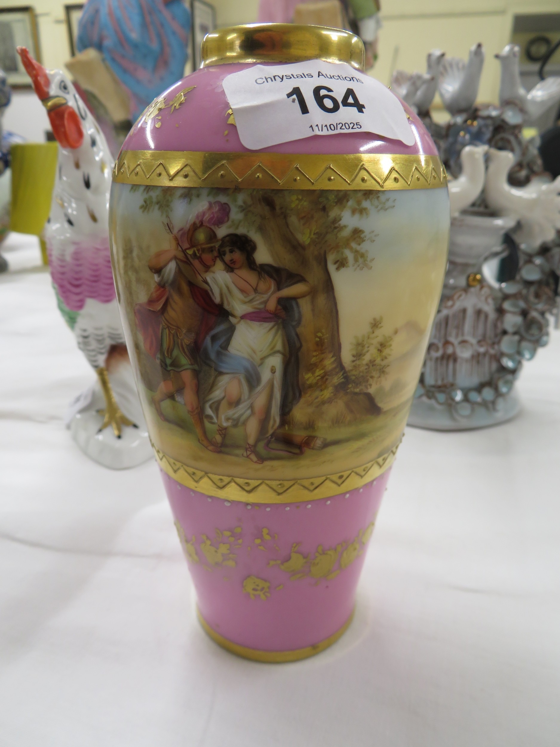 Vienna porcelain vase classical figures on a track with gilt borders and a pink ground - ht. 7 ins