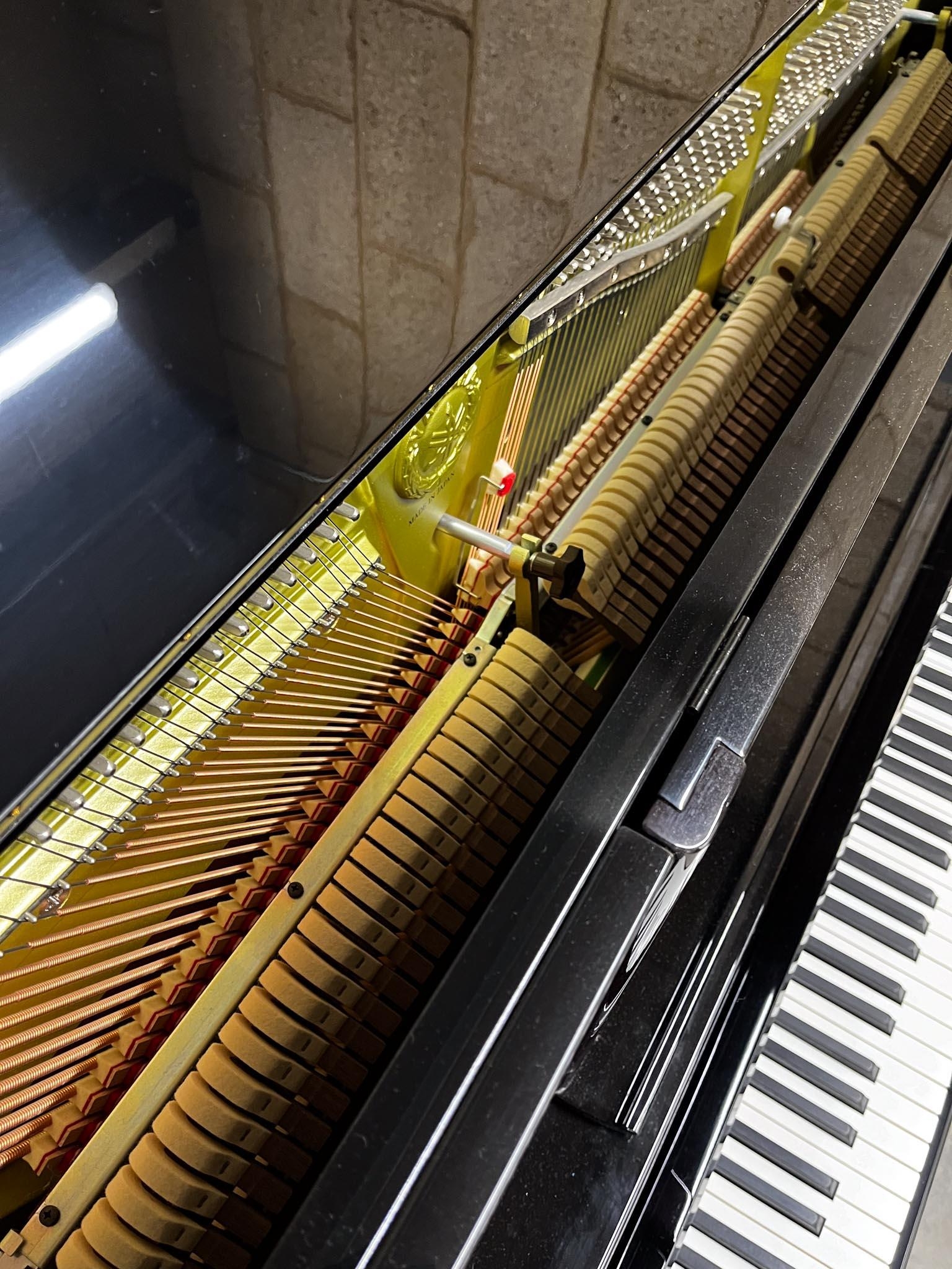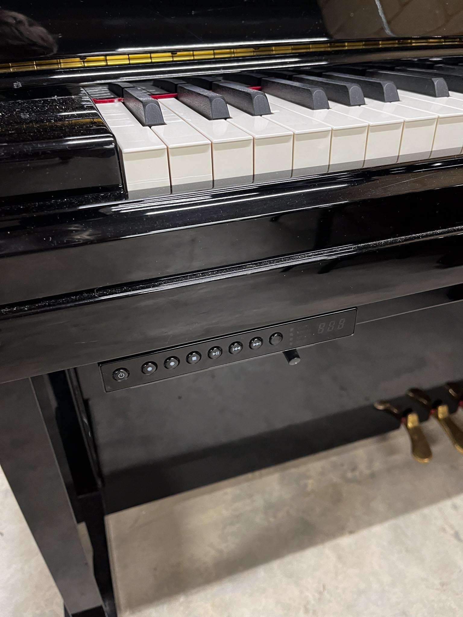 A Model YUS 5S-Silent upright piano in a traditional bright ebonised case; fitted with a silent system.