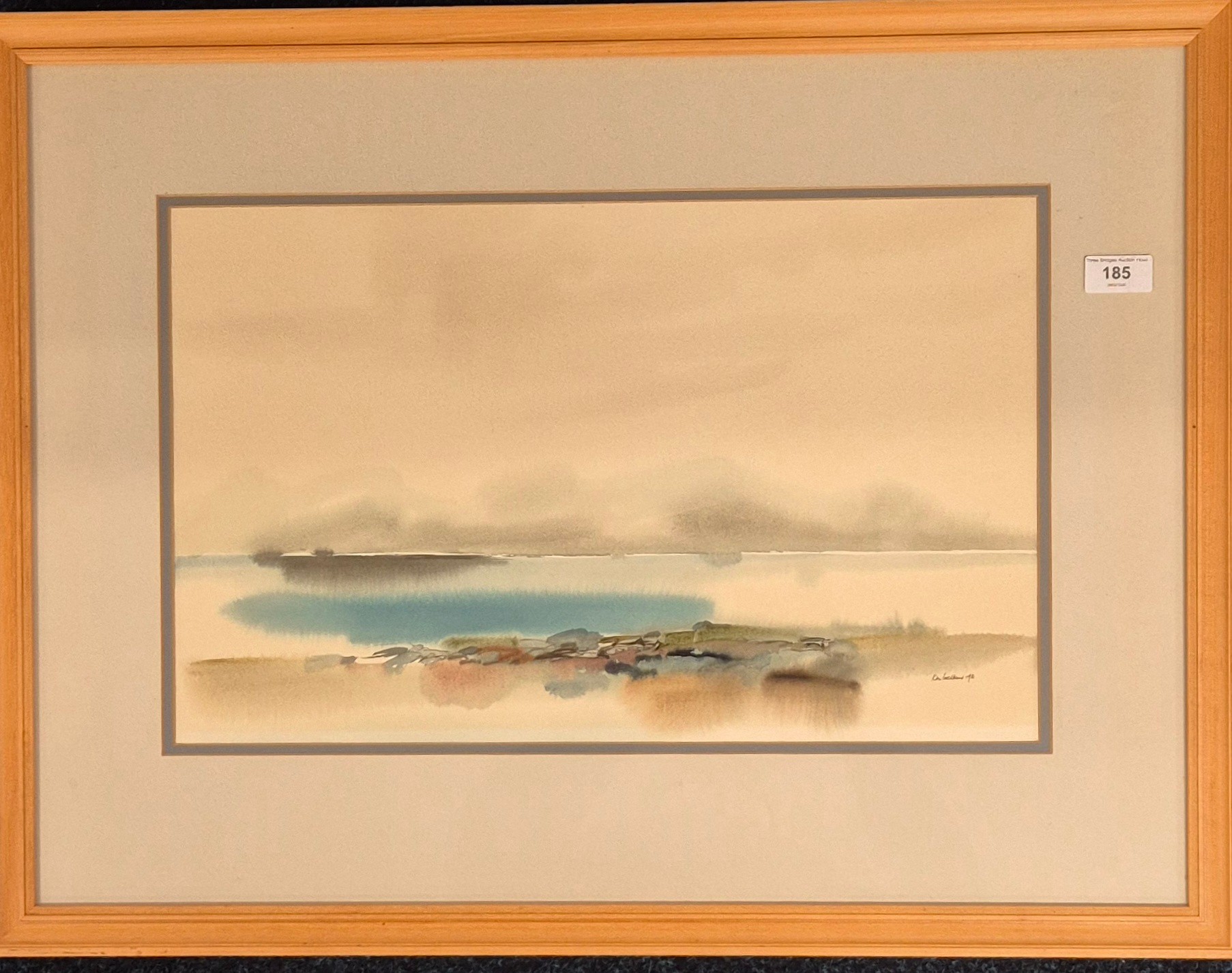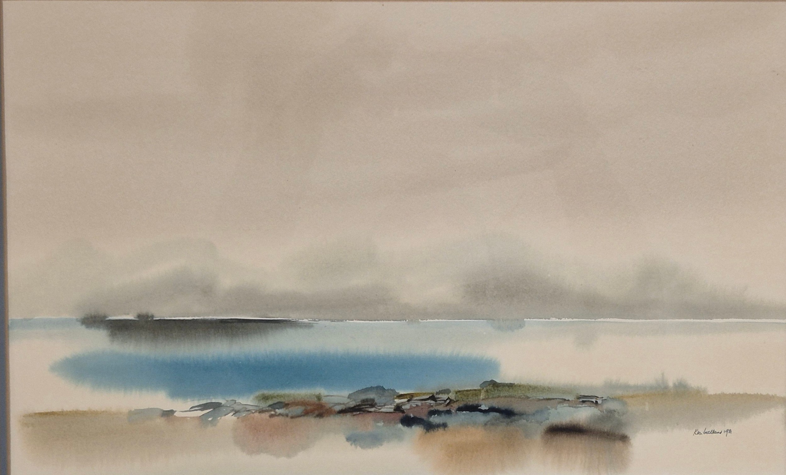 Original Watercolour Scottish Coastal scene titled Shore Hues Arisaig. H32xL50cm. set in oak modern frame