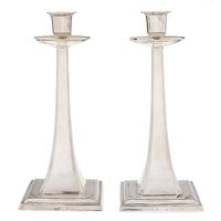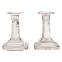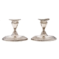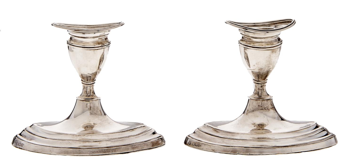 A pair of Edwardian silver dwarf navette shaped candlesticks, nozzles, 85mm h, by Thomas Bradbury & Sons, Sheffield 1906, loaded