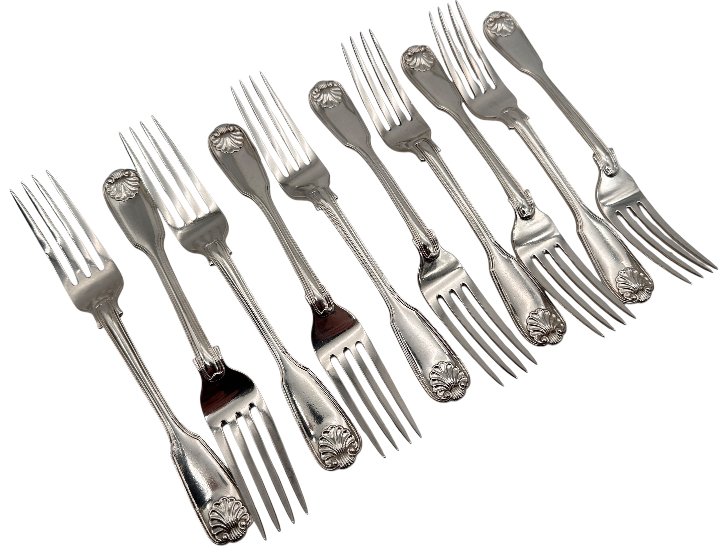 Set of 10 Georgian Hallmarked Silver Dessert Forks. 620g
