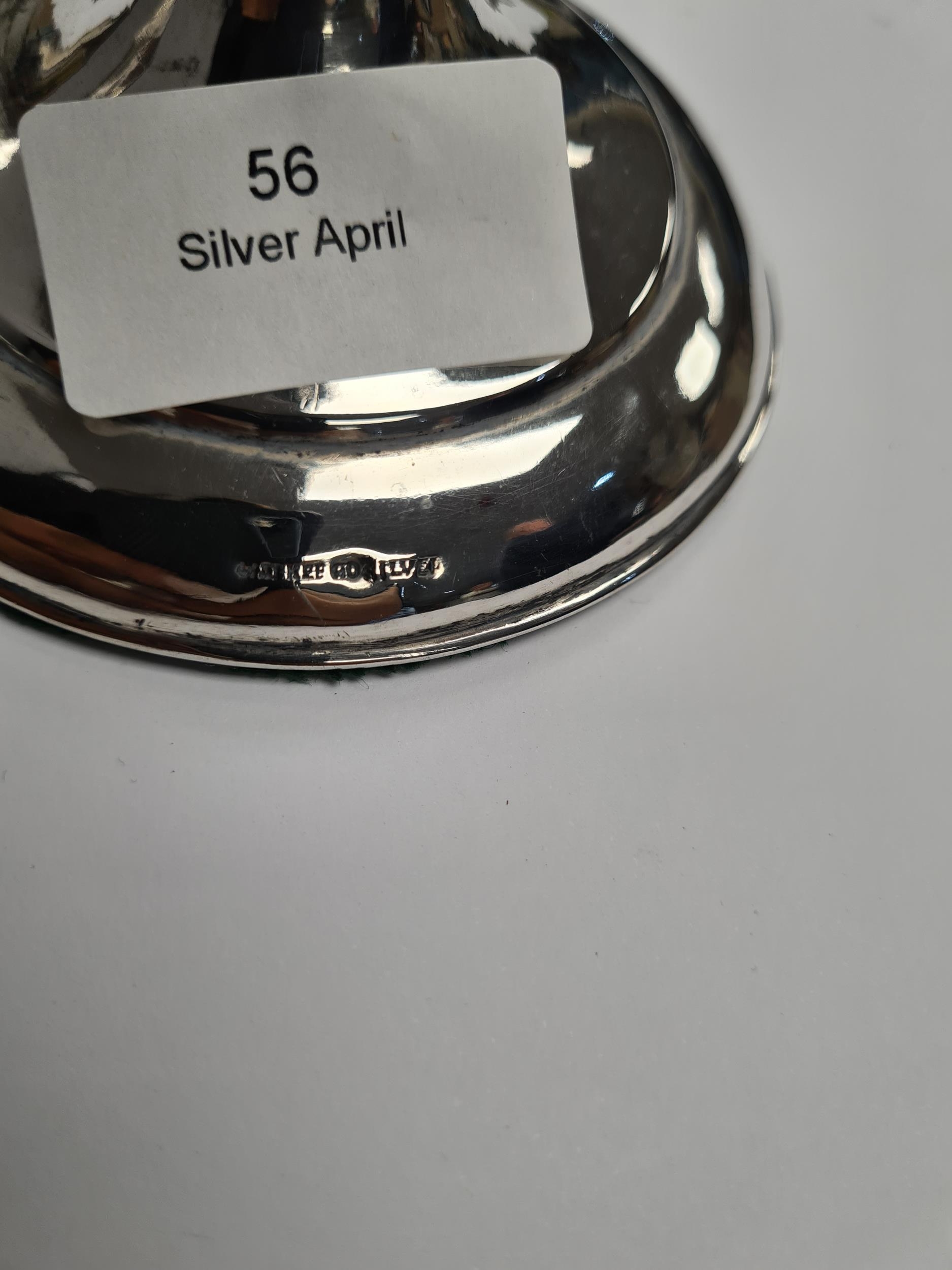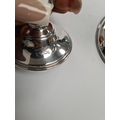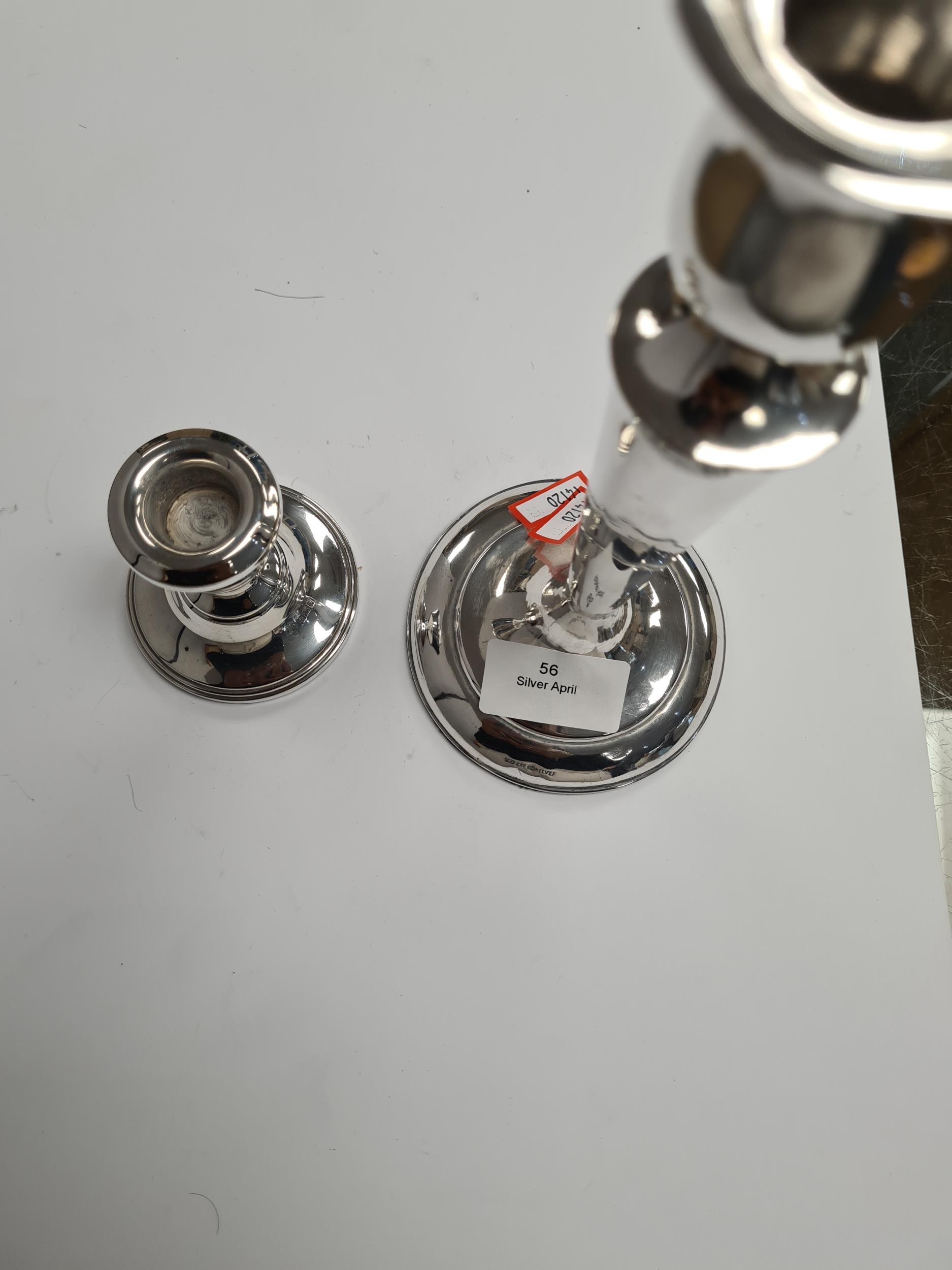 A silver candlestick by Wai Kee, and a miniature candlestick by ESC, 21.5cm approx and 7.5cm approx high. Condition Report: Slightly leaning, minor dents