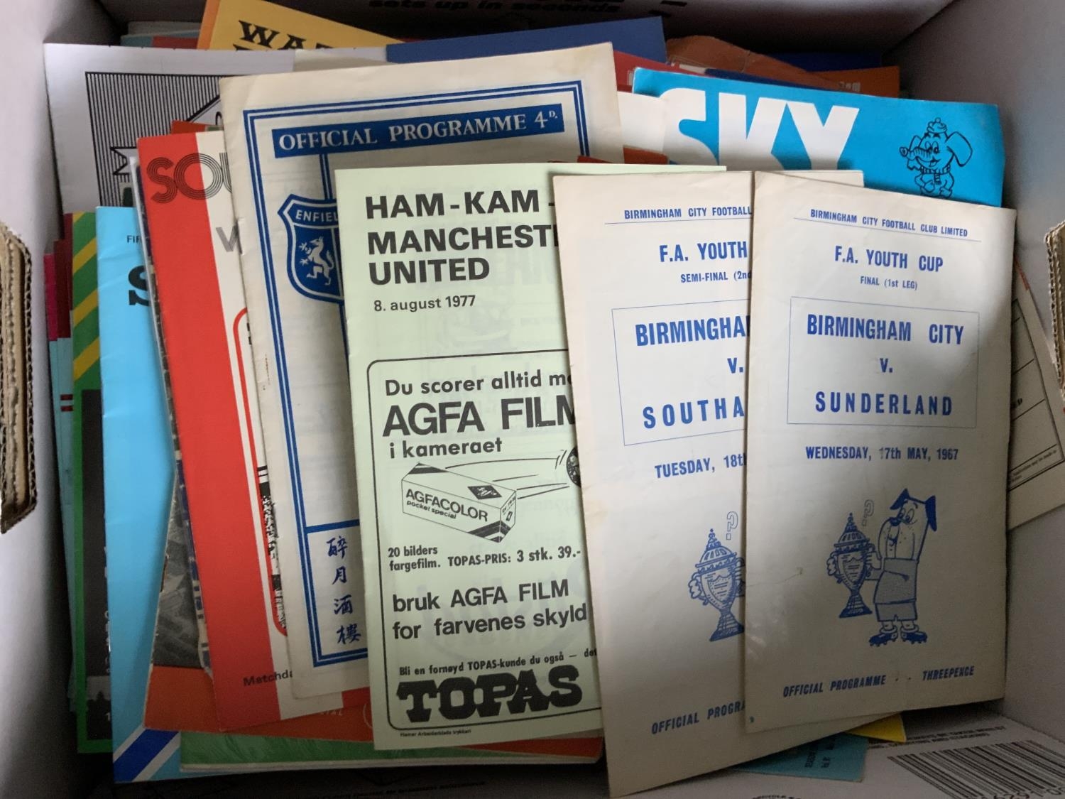 1960s + 1970s Football Programmes: Incredibly varied private collection to include mainly 60s and 70s although some older and newer spotted. Must view with single sheets, Youth cup, European cup, Scottish and more. Excellent condition. Many hundreds.