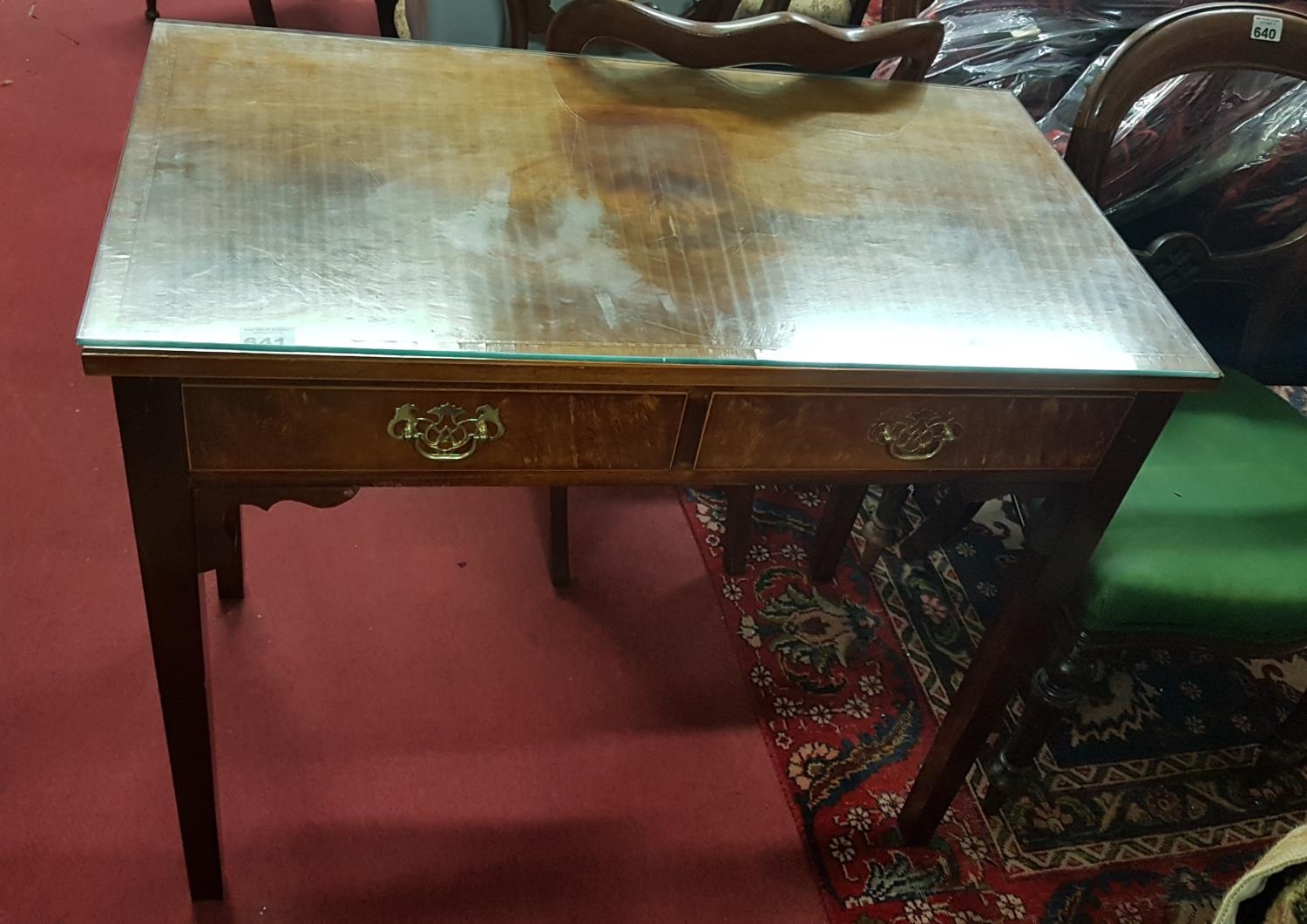 A late 19th Century Mahogany two drawer Side Table. H76cm X W90cm.