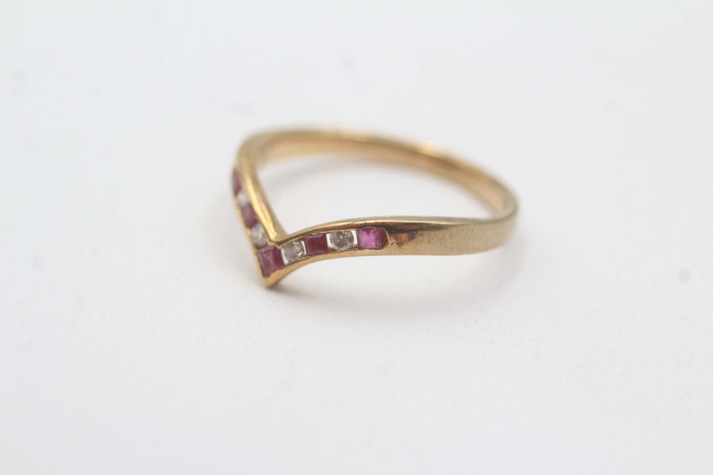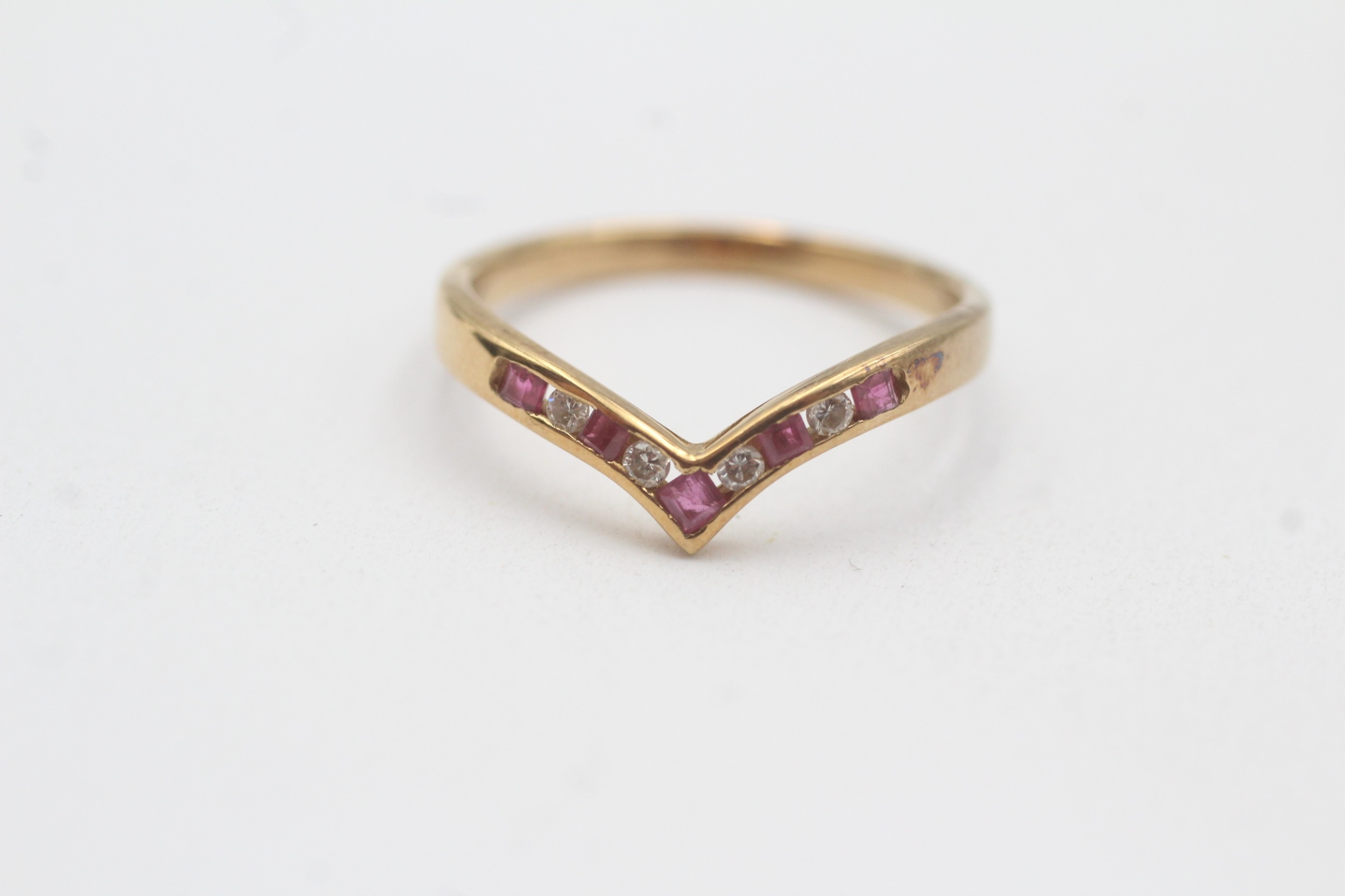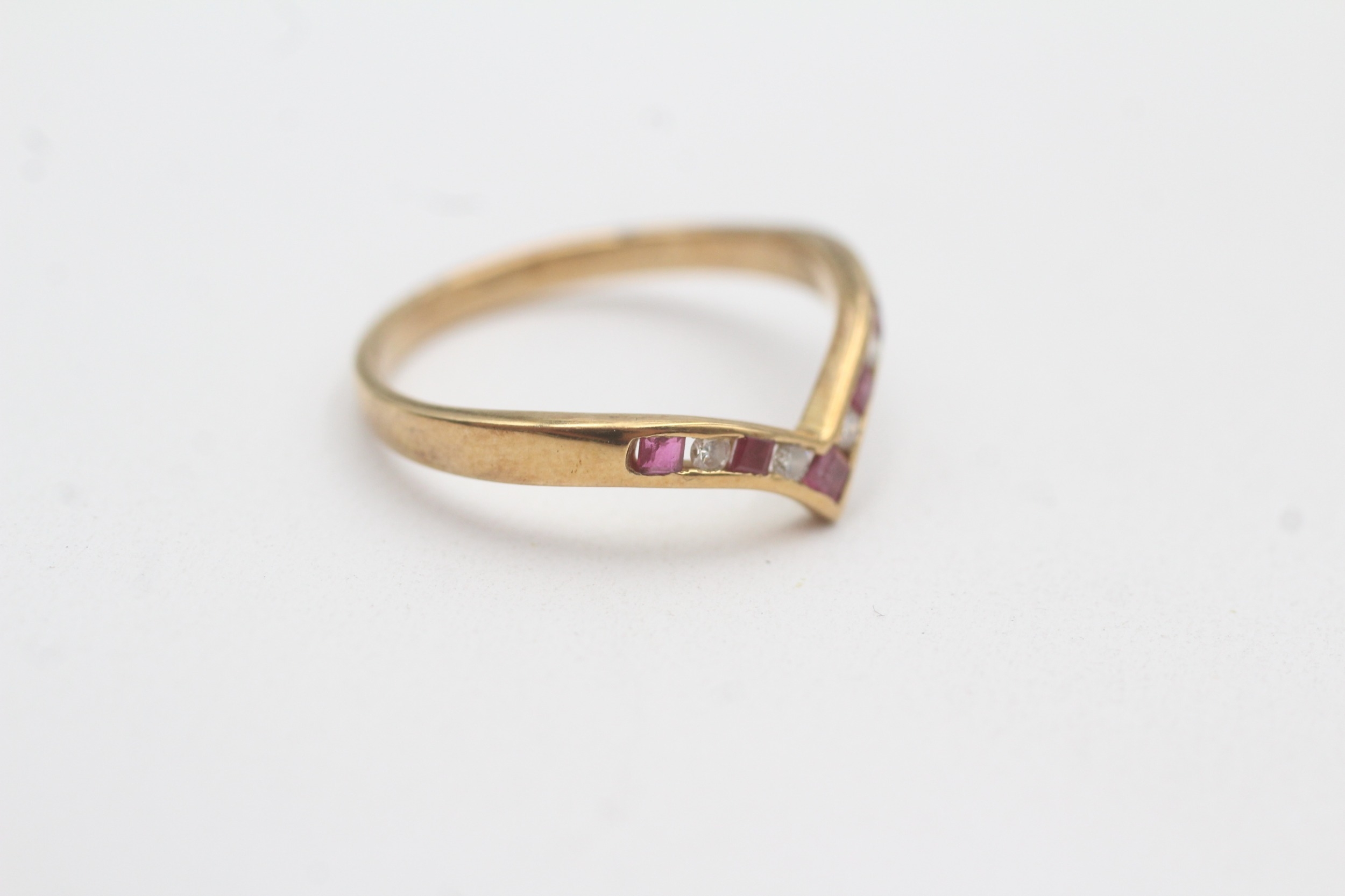 18ct gold ruby diamond wishbone ring (2.1g) Size M