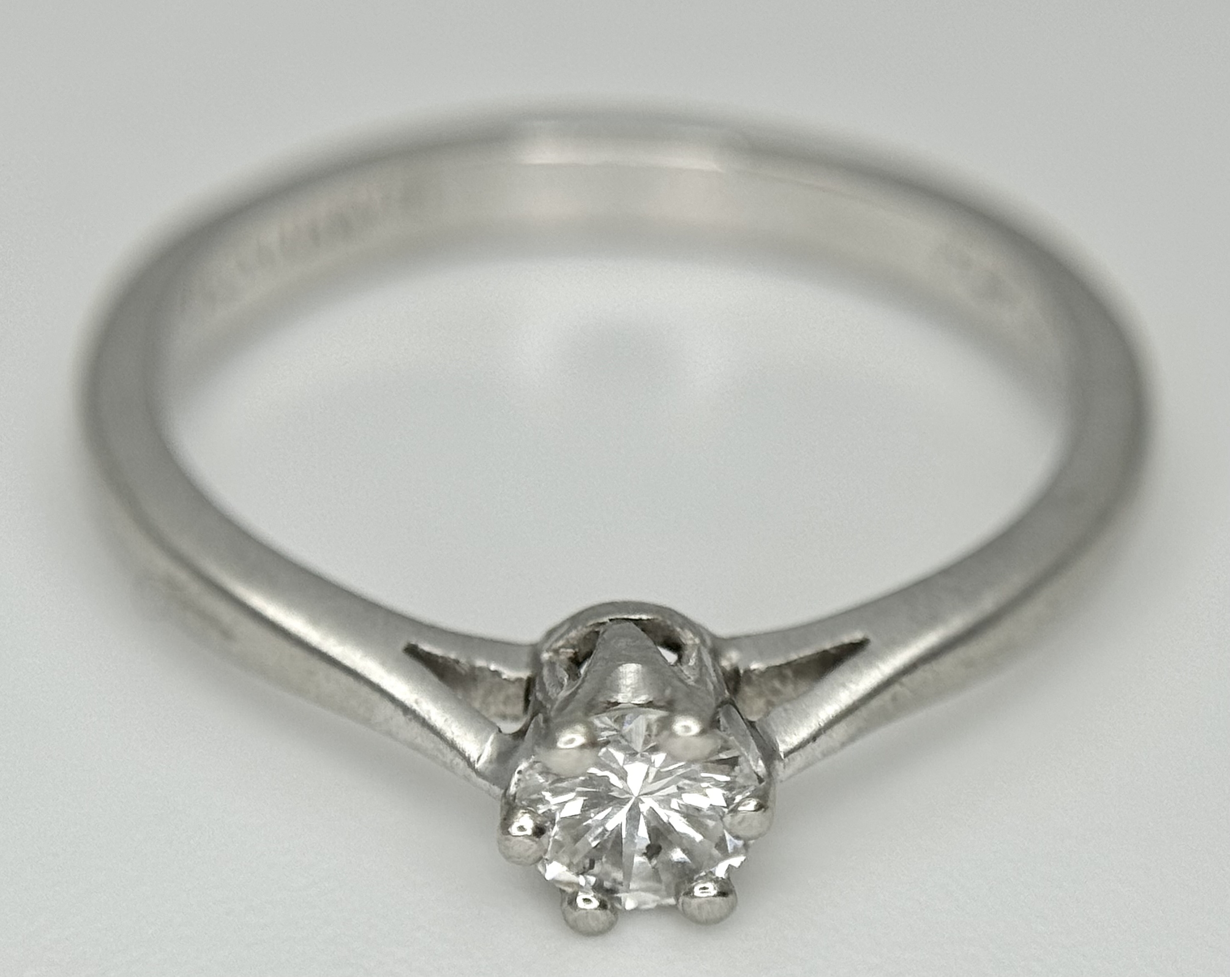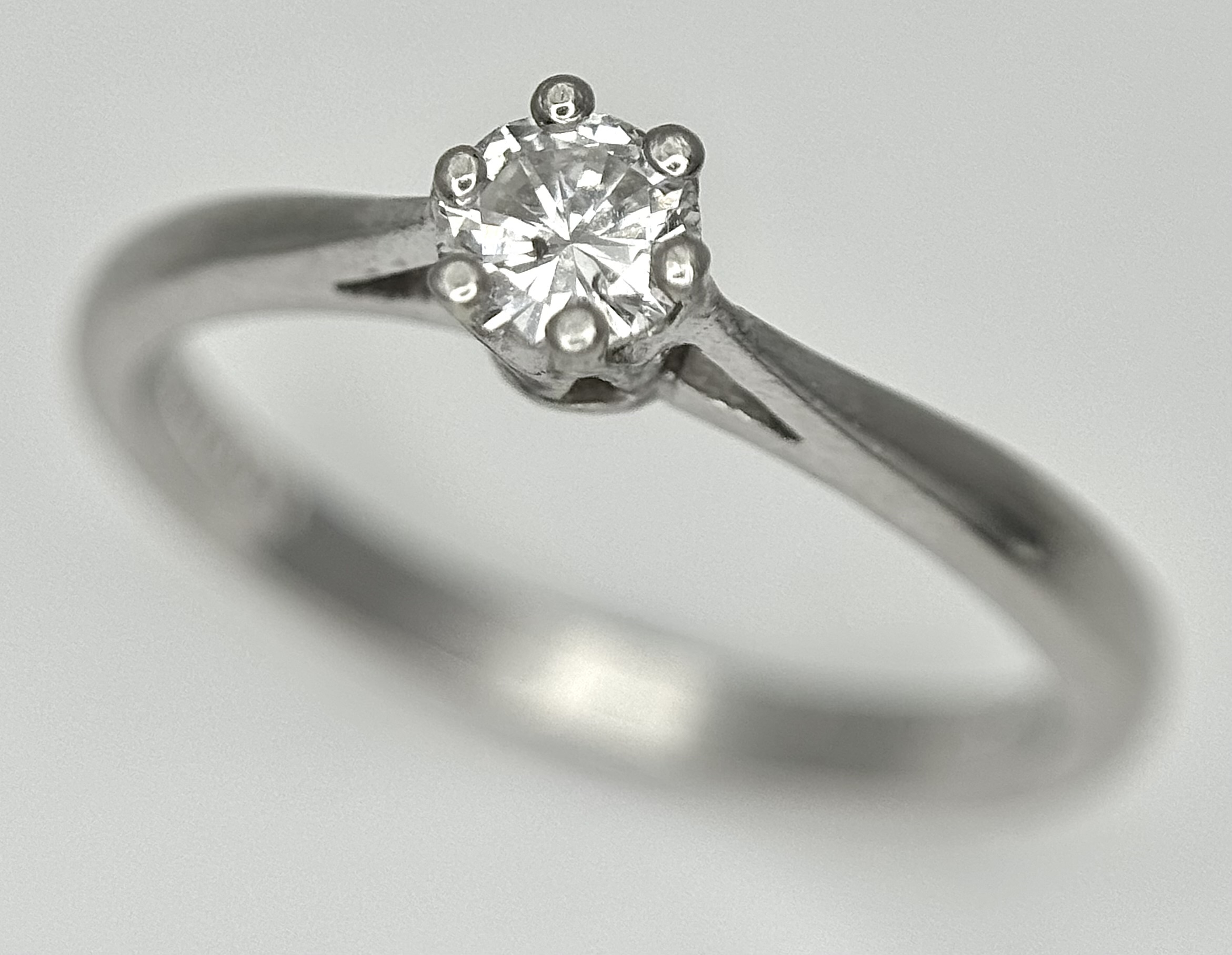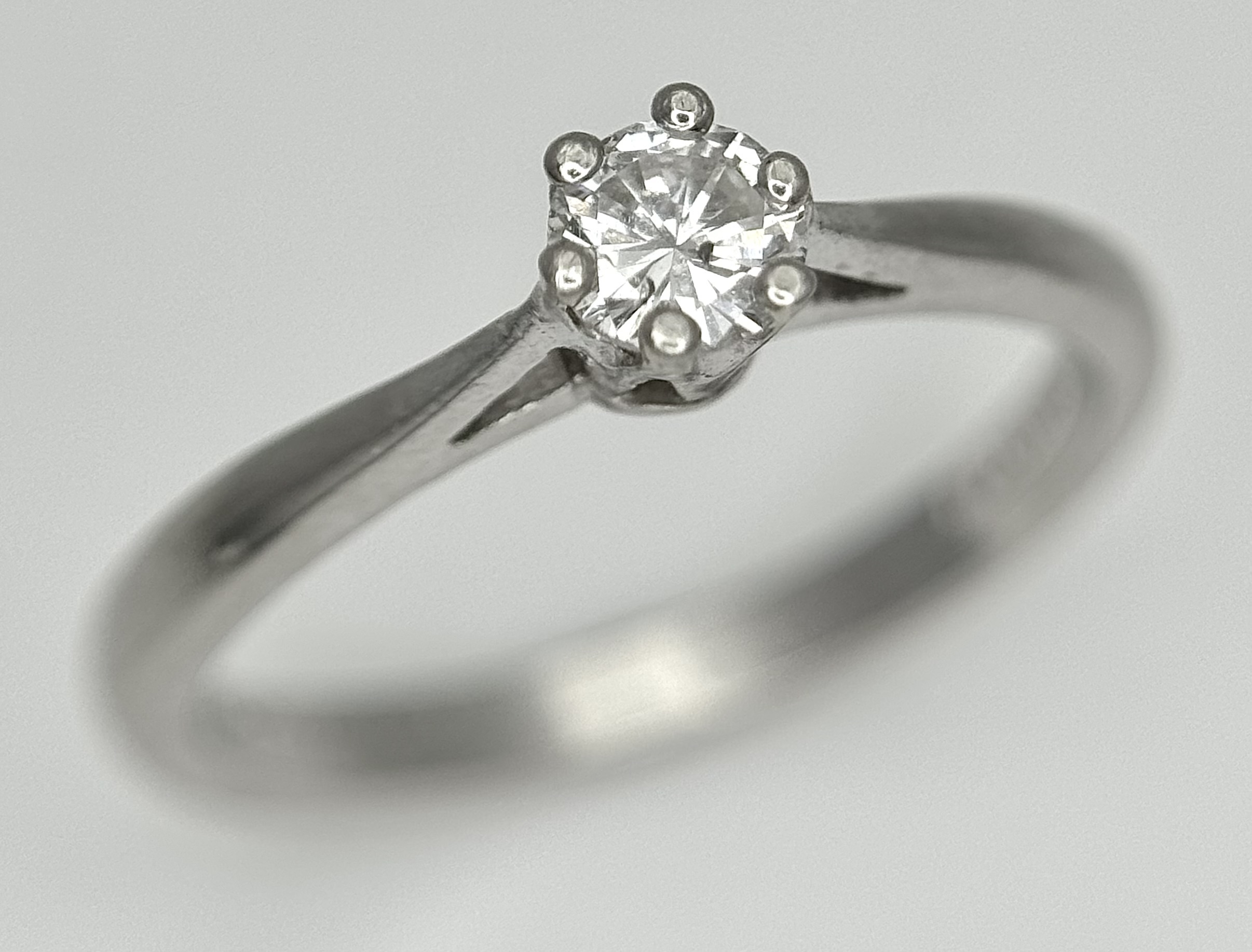 A PLATINUM AND DIAMOND SOLITAIRE RING. 0.25CT. 6 CLAW SET. 3.4G. SIZE M. SPSA-3001.