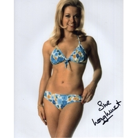 Hammer Horror movie actress Sue Longhurst signed sexy bikini B&W 8x10 photo.