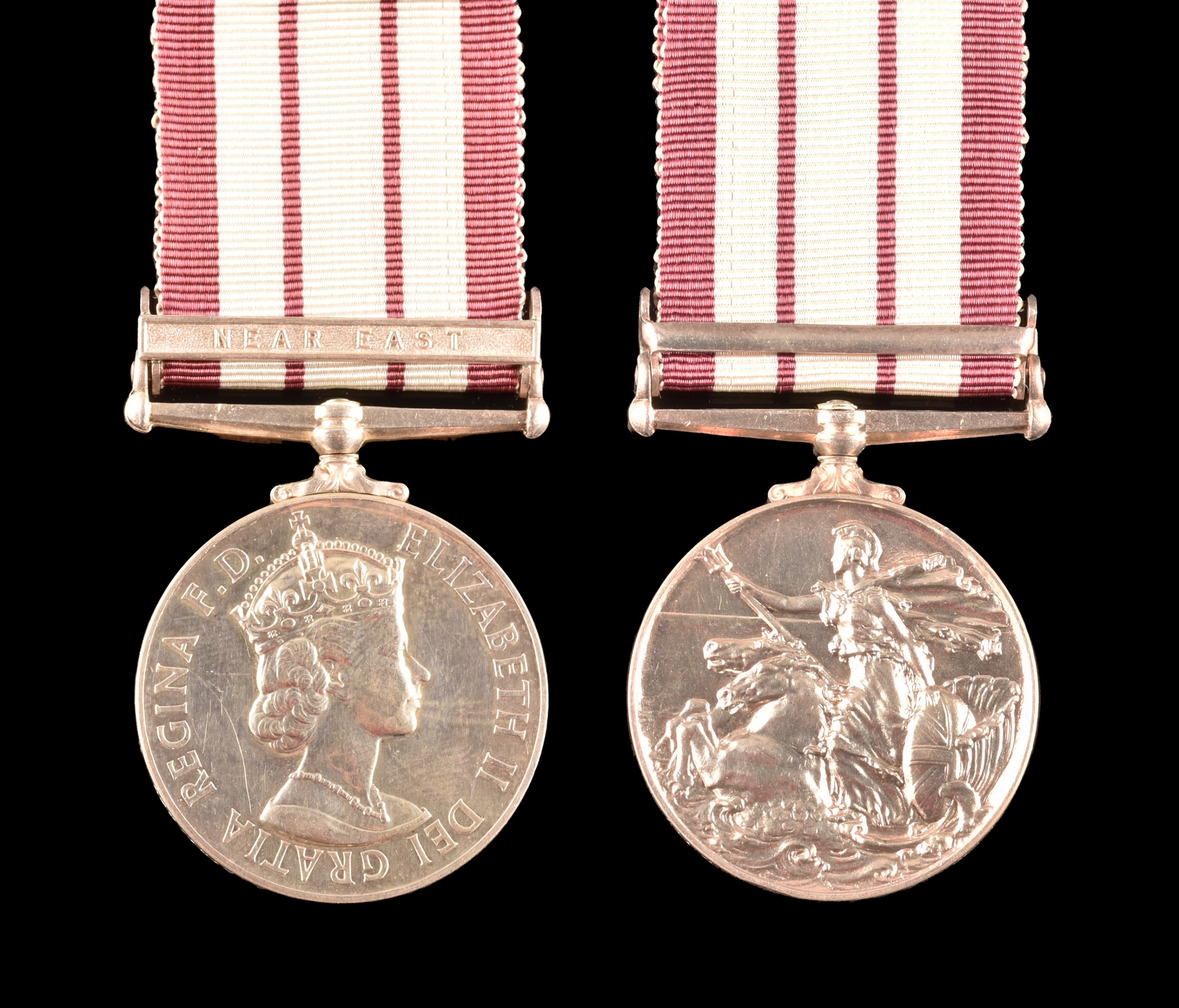 A George VI Naval General Service Medal GSM 1915-62, 1 clasp, Near East awarded to: C/K 959742 C. A. Bowles Mechanic Engineer, Royal Navy (C/K 959742 C. A. Bowles M. (E.) 1. R.N.).