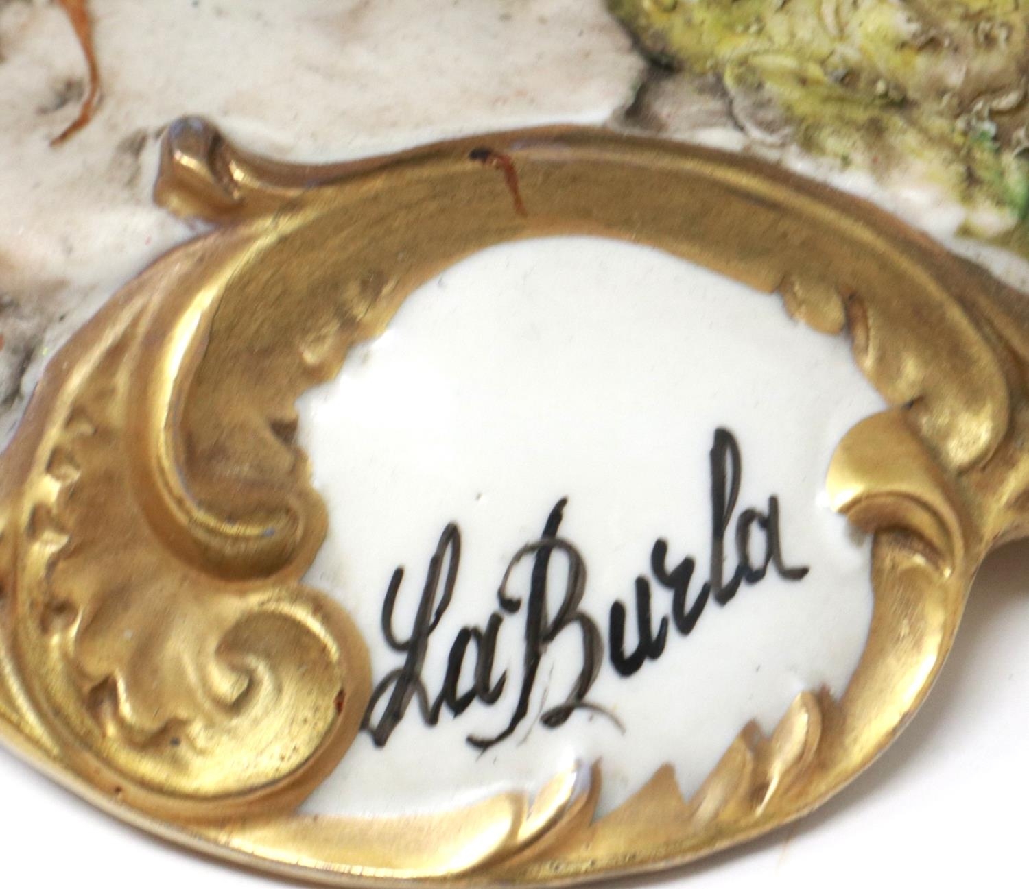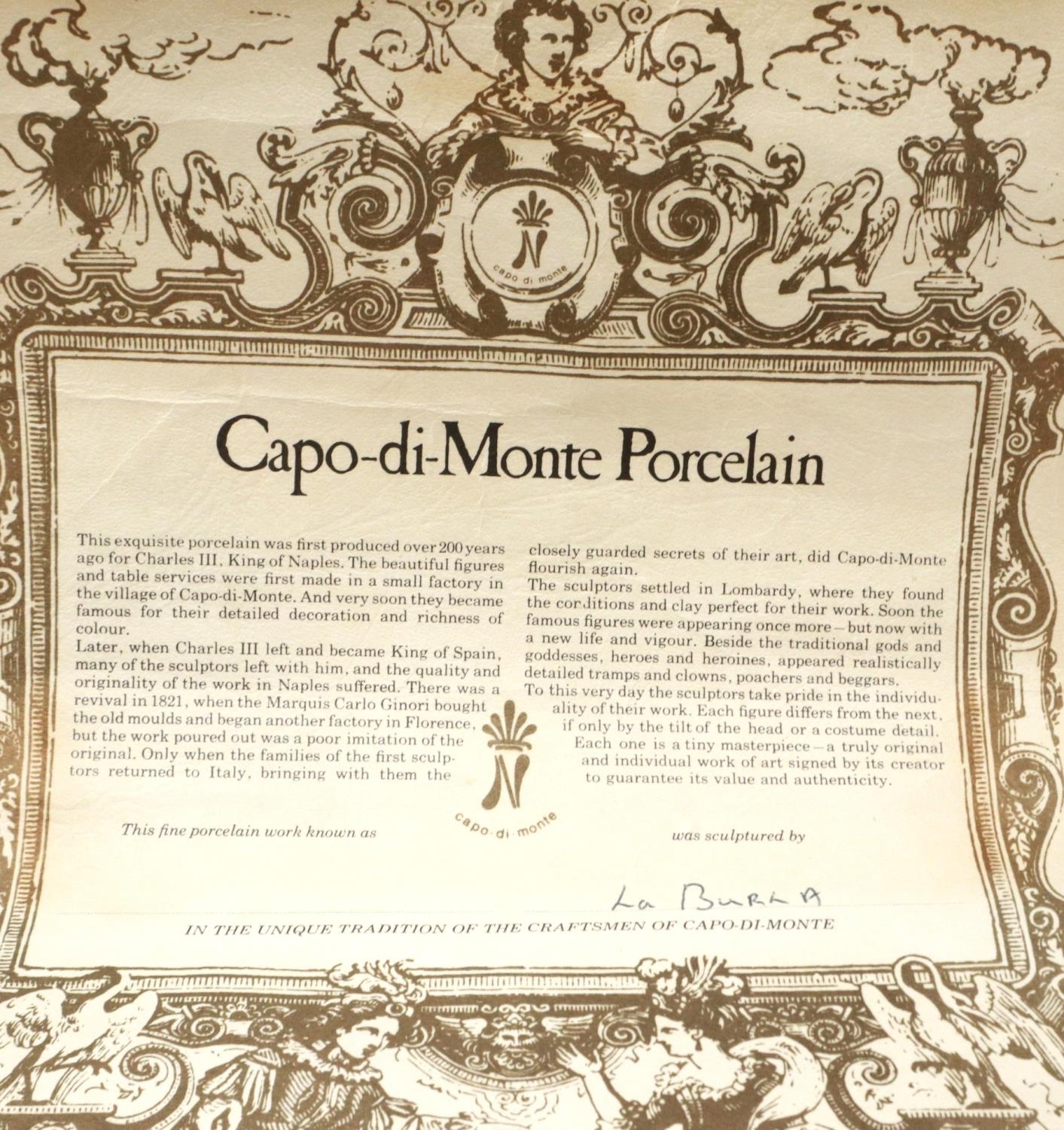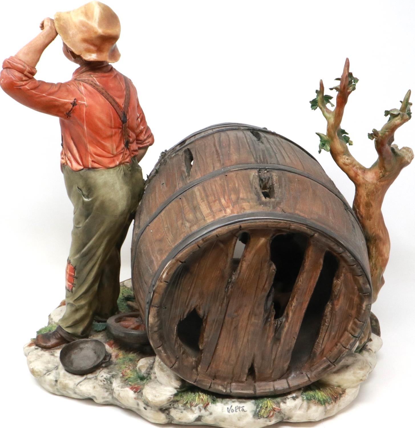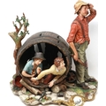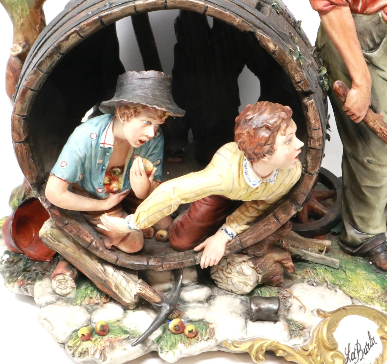 Large Capodimonte figural group, Huck Finn and Tom Sawyer in an apple orchard, signed La Burla with CoA, H: 45 cm. Not available for in-house P&P