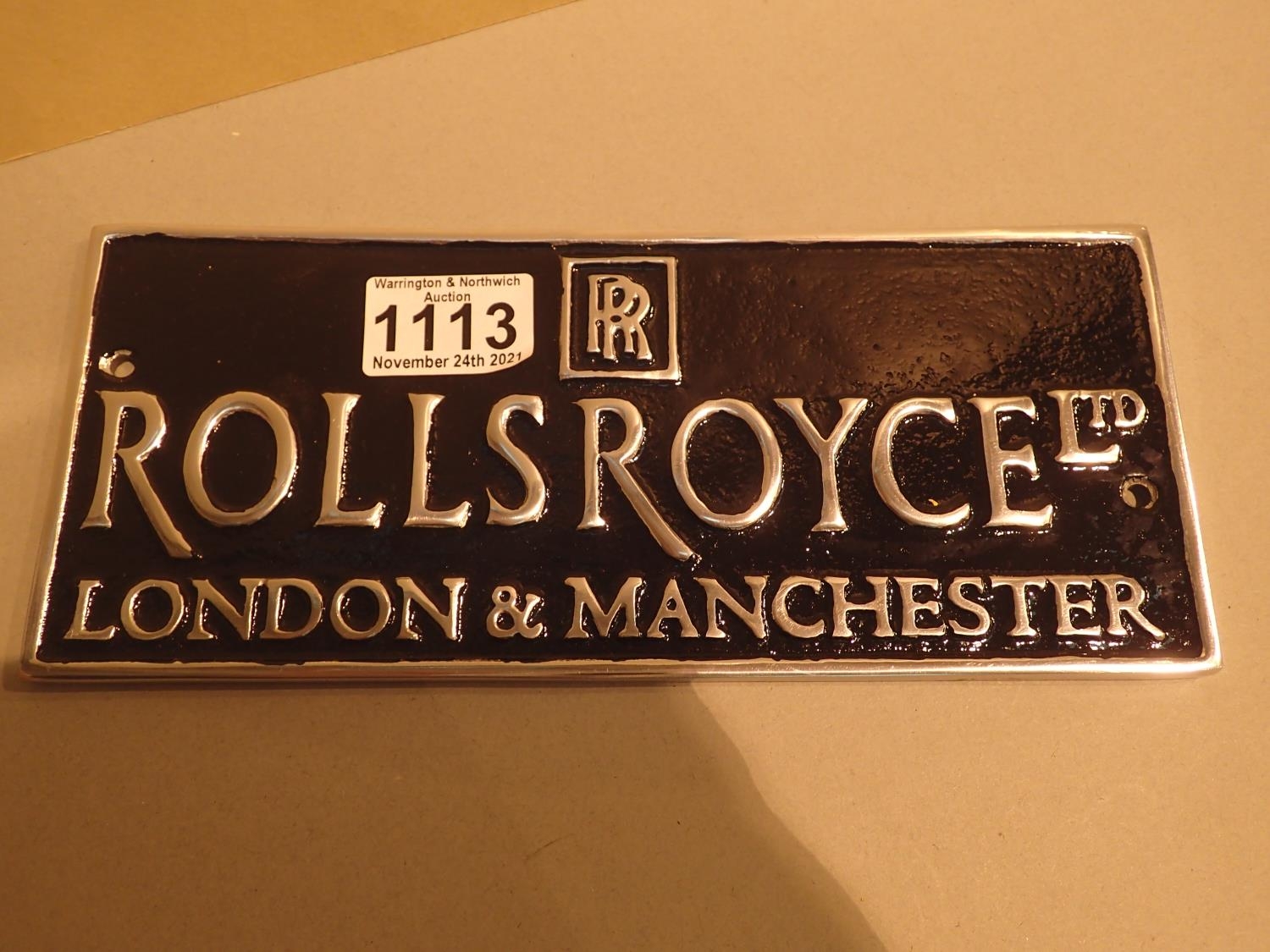Cast iron Rolls Royce shop wall sign, L: 25 cm. P&P Group 1 (£14+VAT for the first lot and £1+VAT for subsequent lots)
