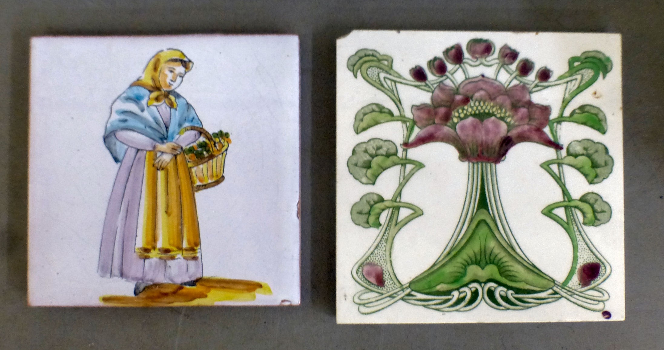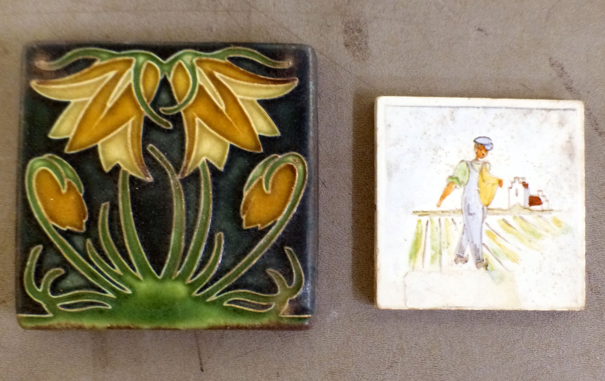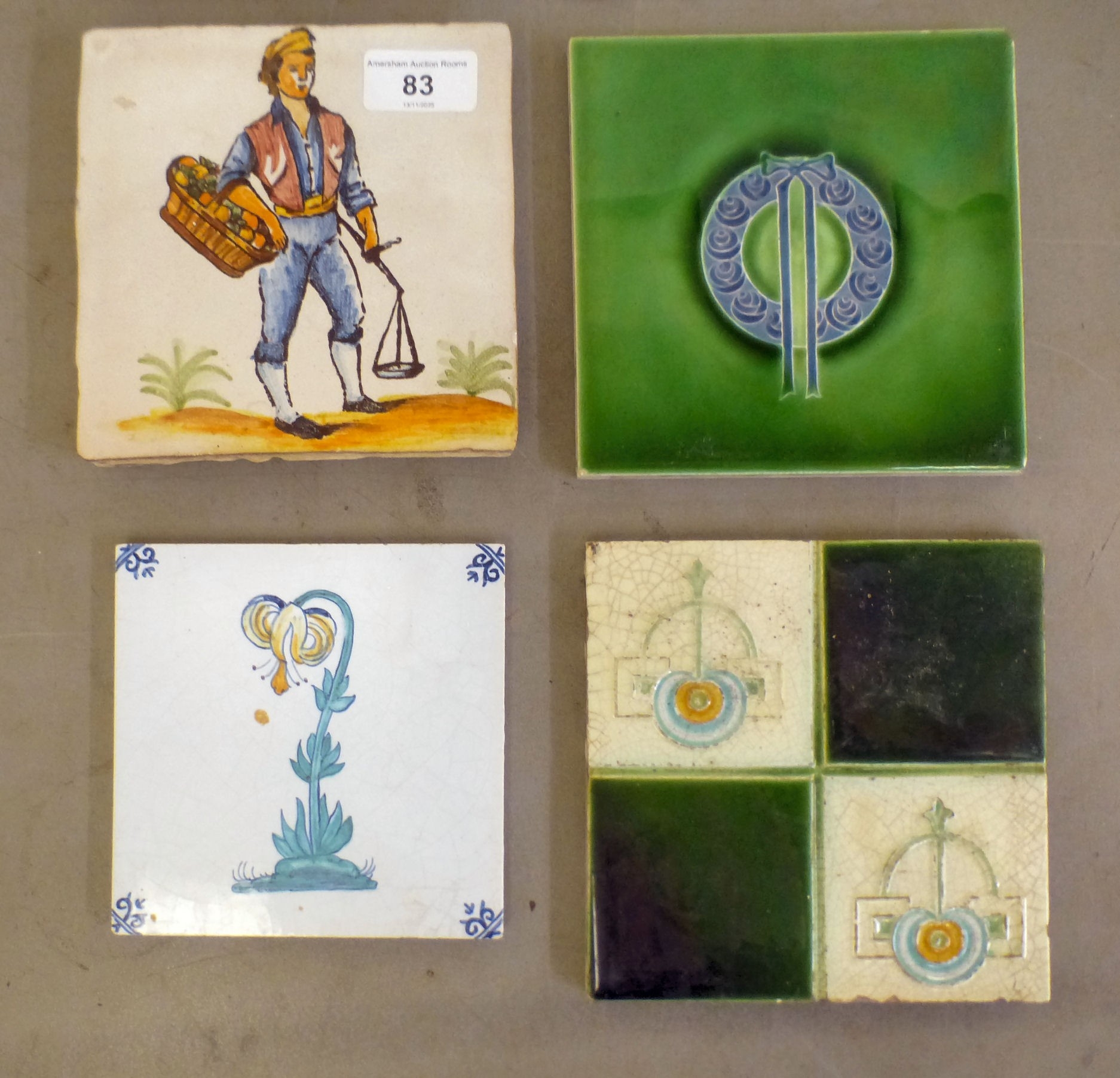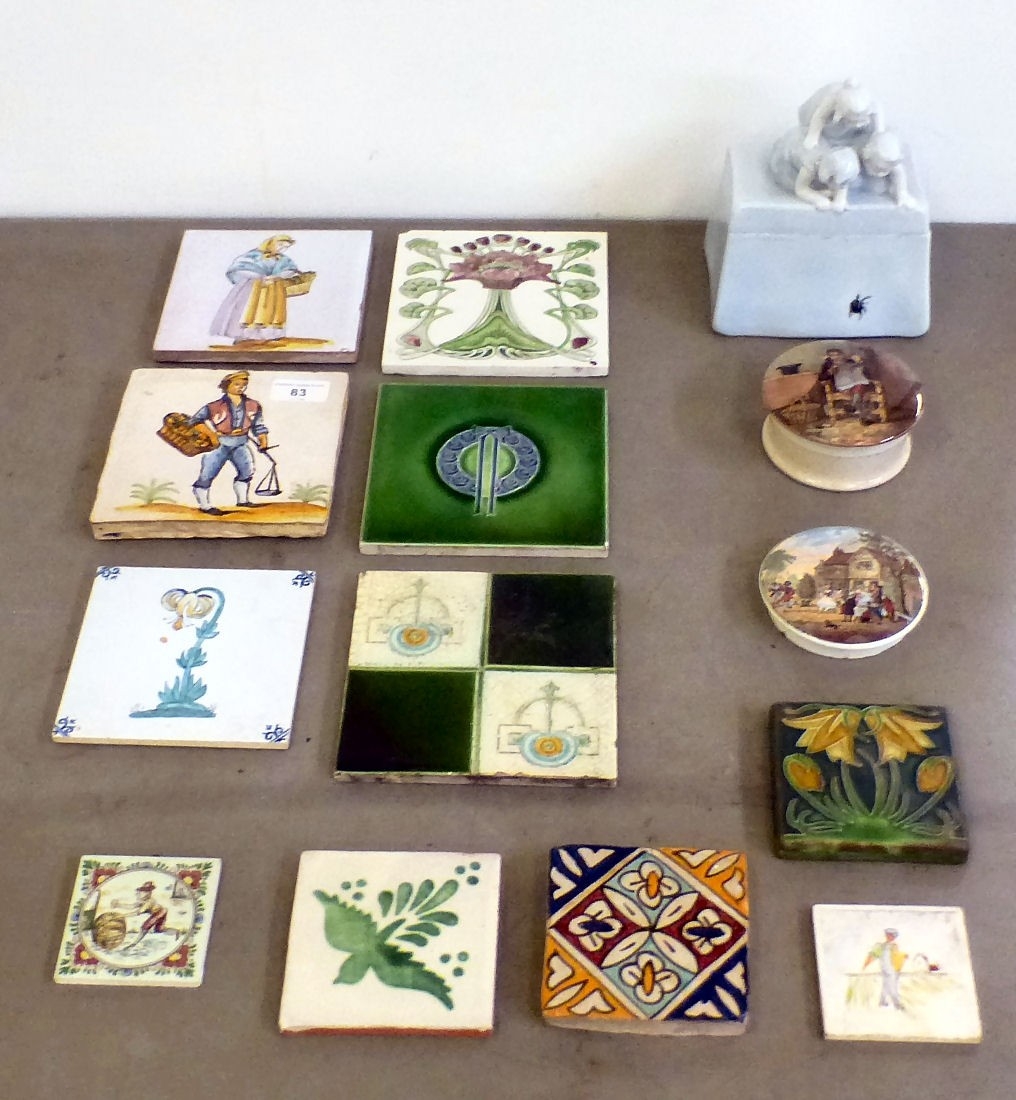 Decorative ceramics: to include pottery tiles variously decorated, ages & sizes