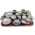 Collection of coffee cans, tea bowls and saucers including Worcester.