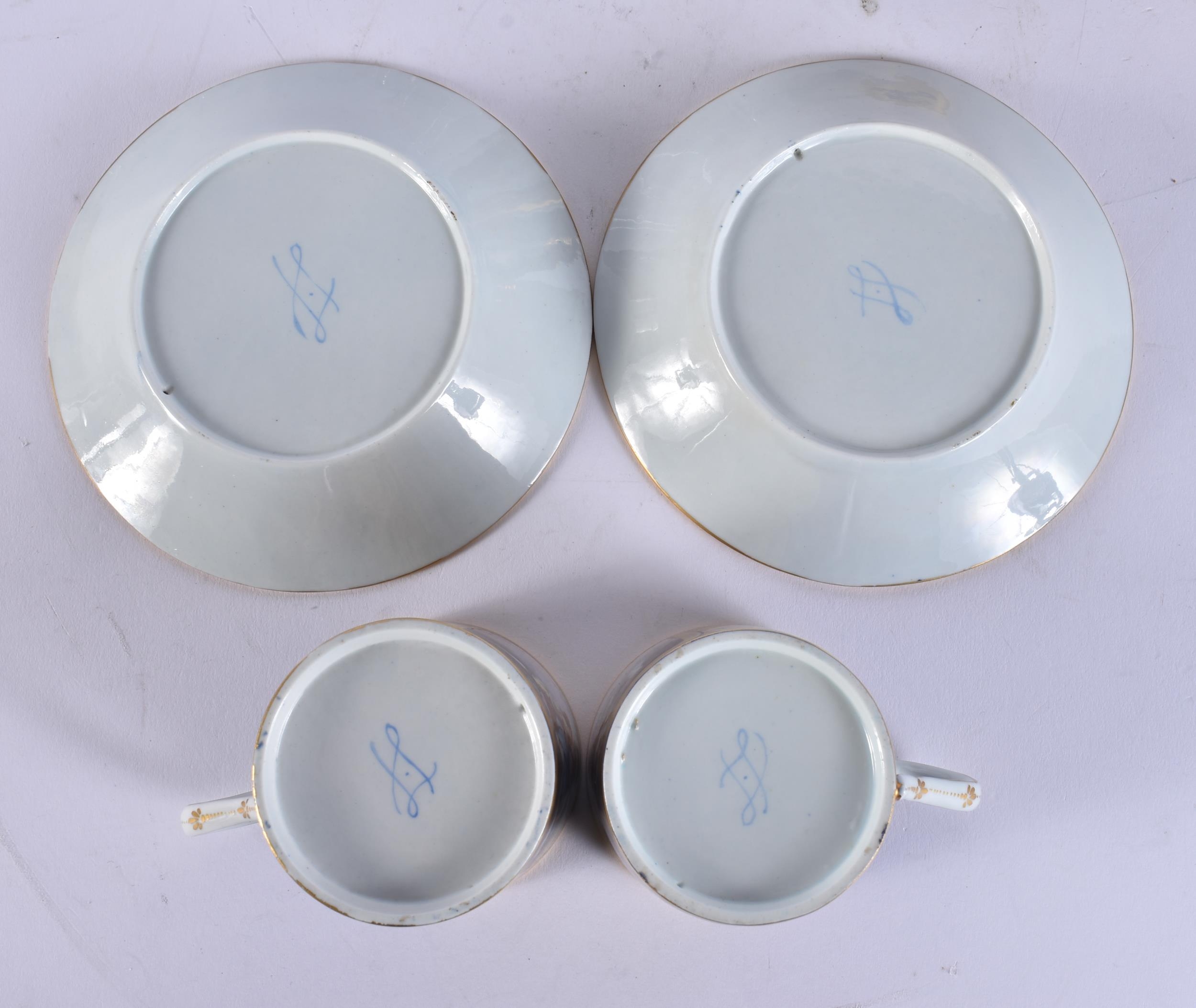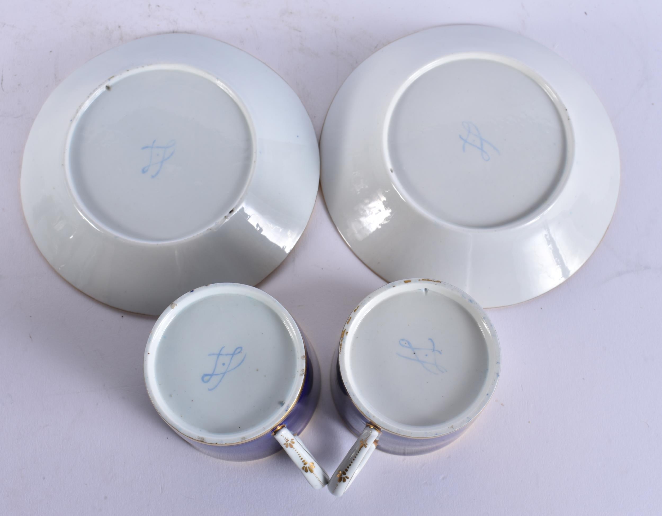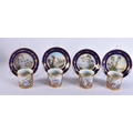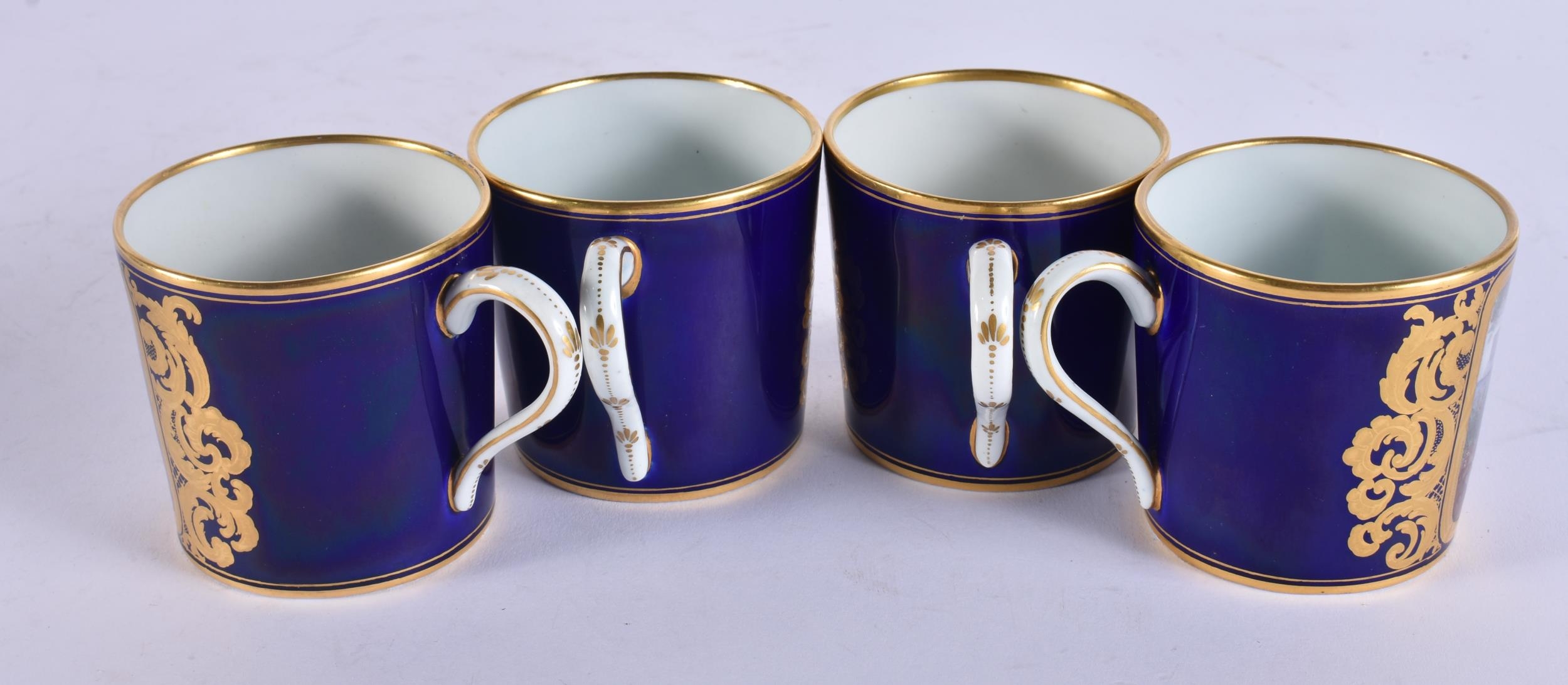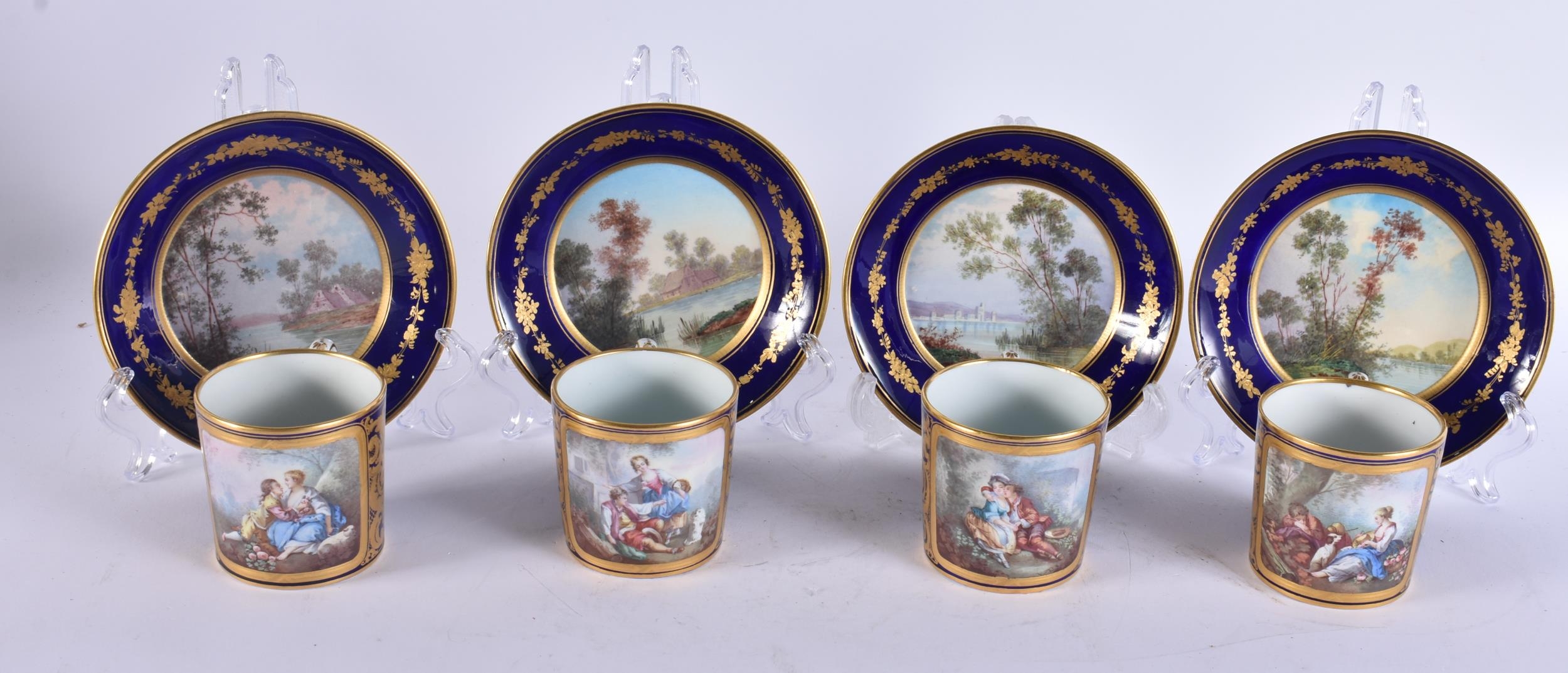 FOUR 19TH CENTURY FRENCH SEVRES PORCELAIN CUPS AND SAUCERS. 13 cm wide. (8)