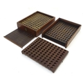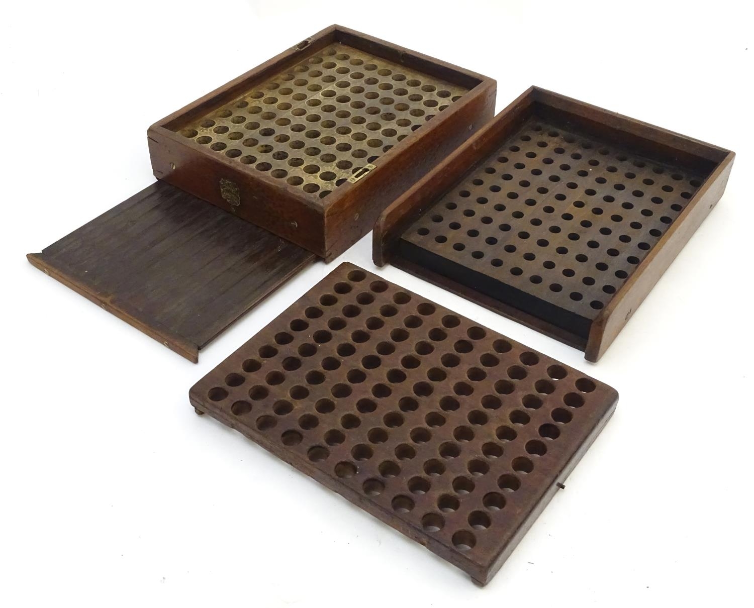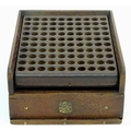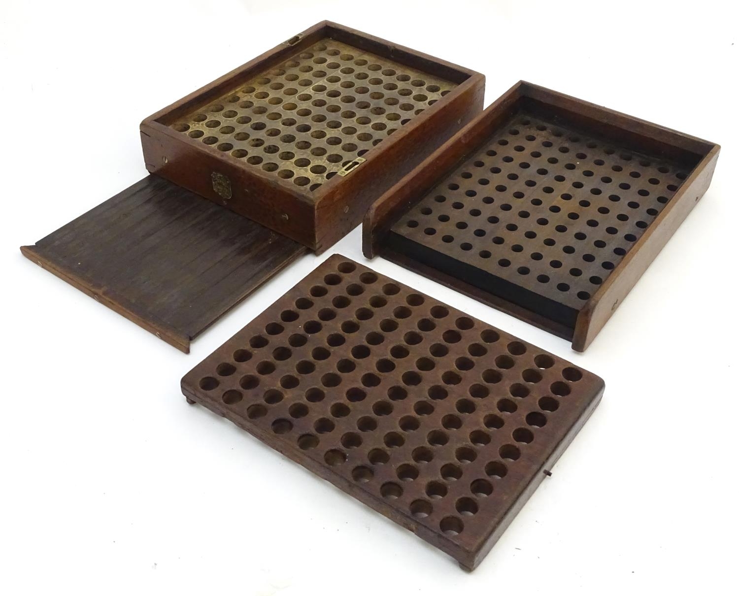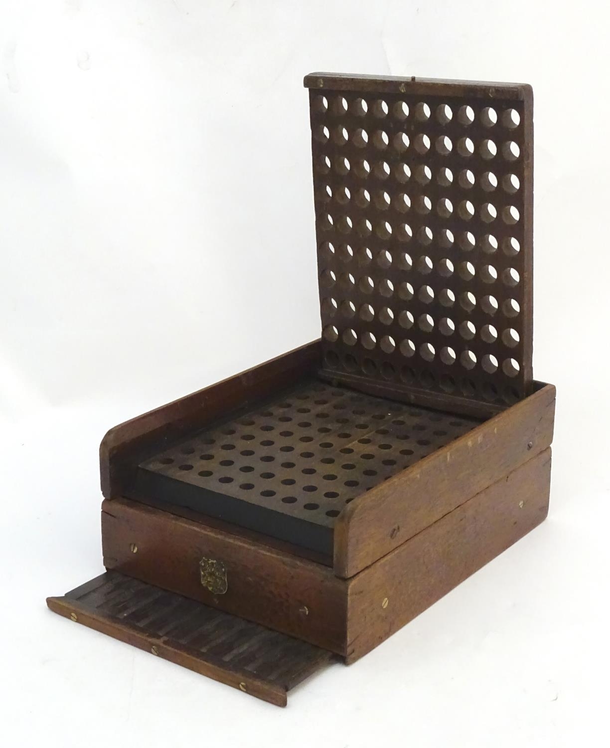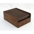 A Victorian mahogany patent cartridge reloading device (12 bore x 100) by J. Erskine, Newton Stewart. 15 1/4" long, 11 1/2" wide, 6" tall