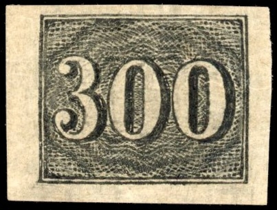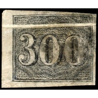 Vertical Numerals: 1850 300r black, four good to large margins fresh large part o.g., lightly hinged.