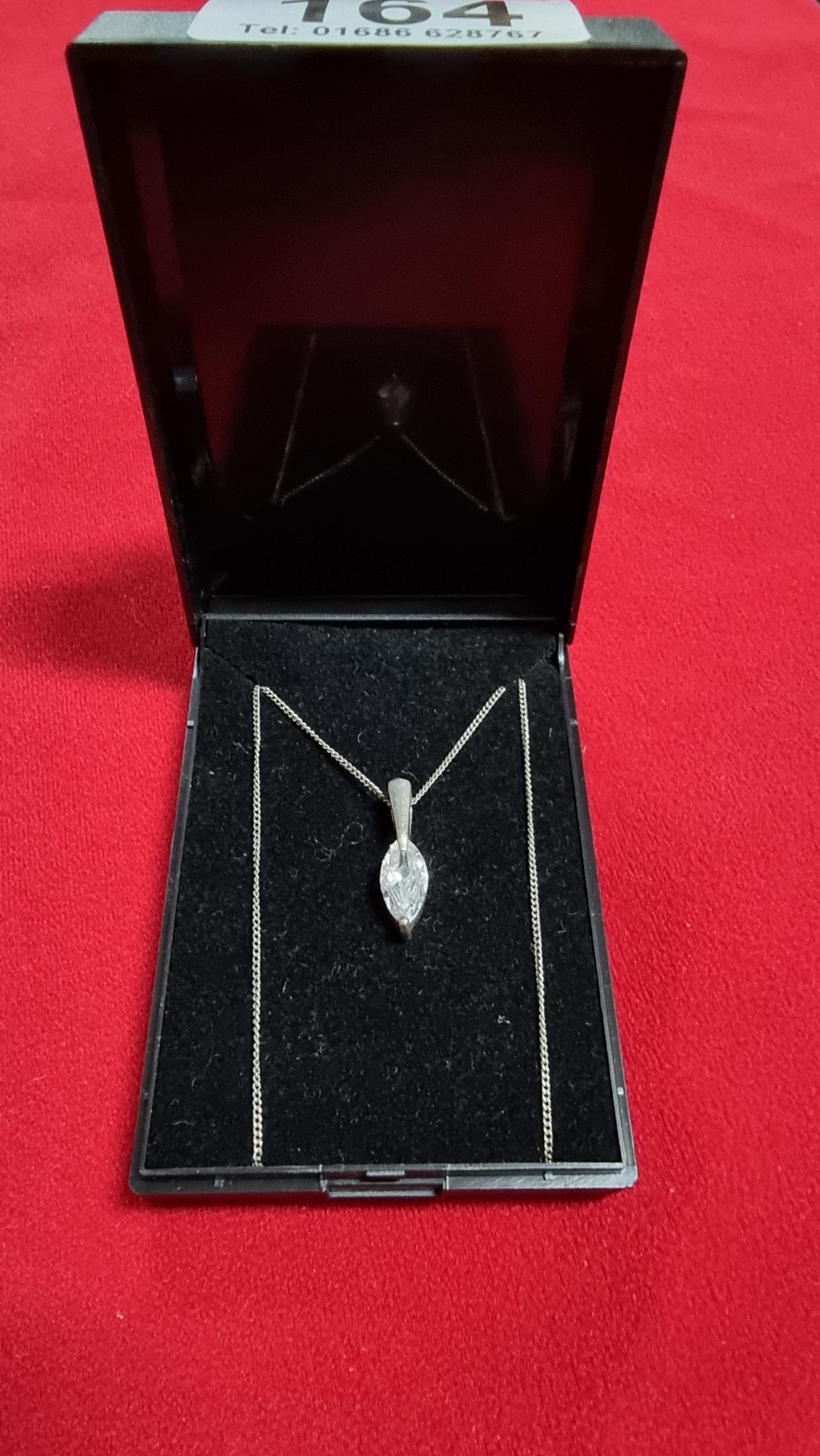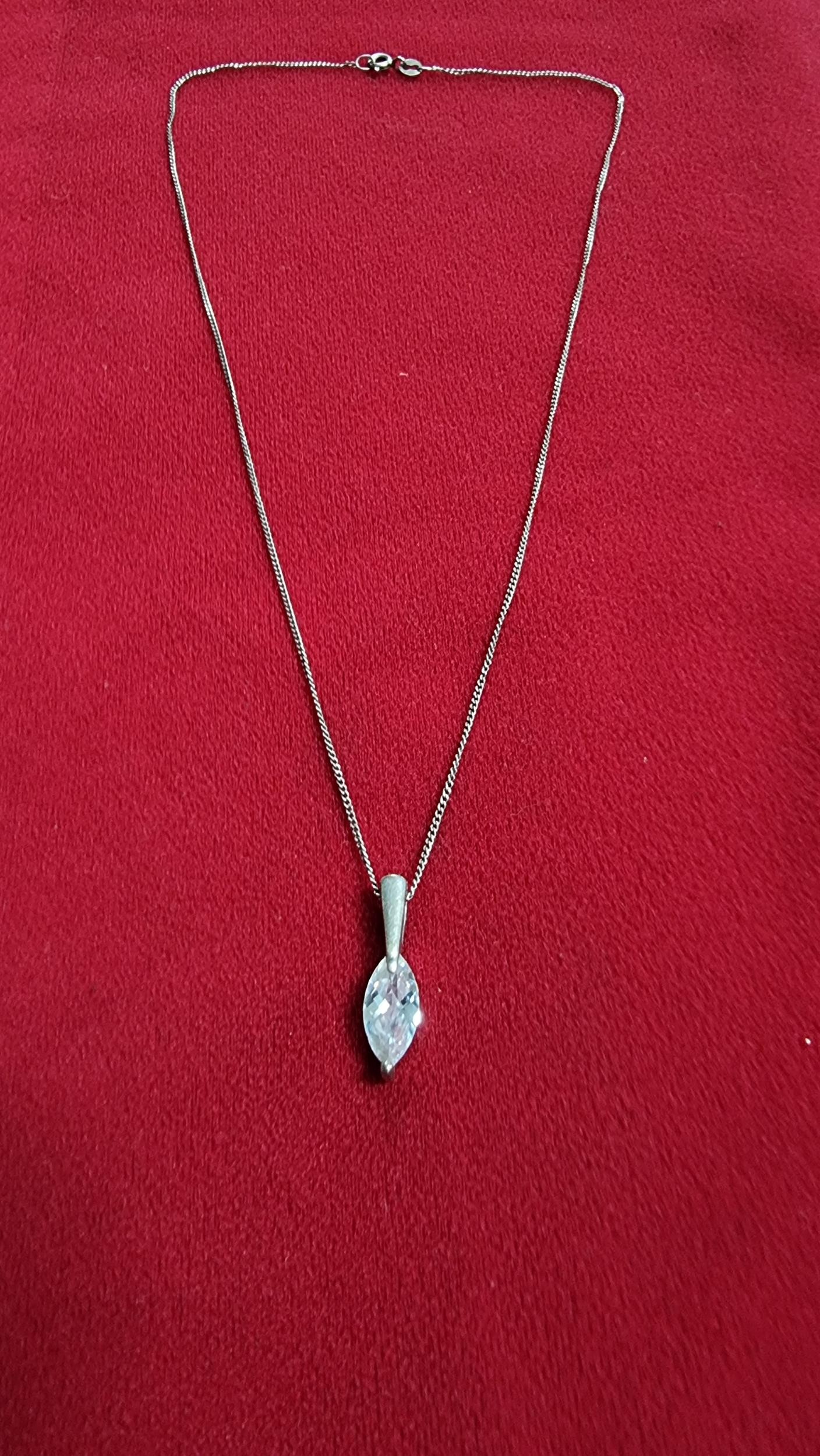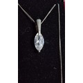 925 silver pendant inset with a large CZ stone on a 16 inch 925 silver chain