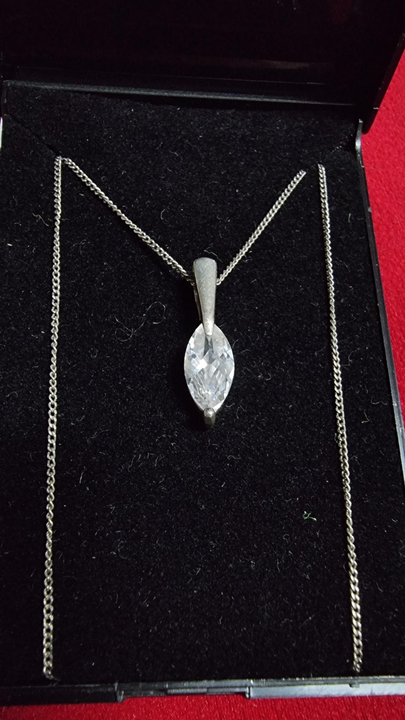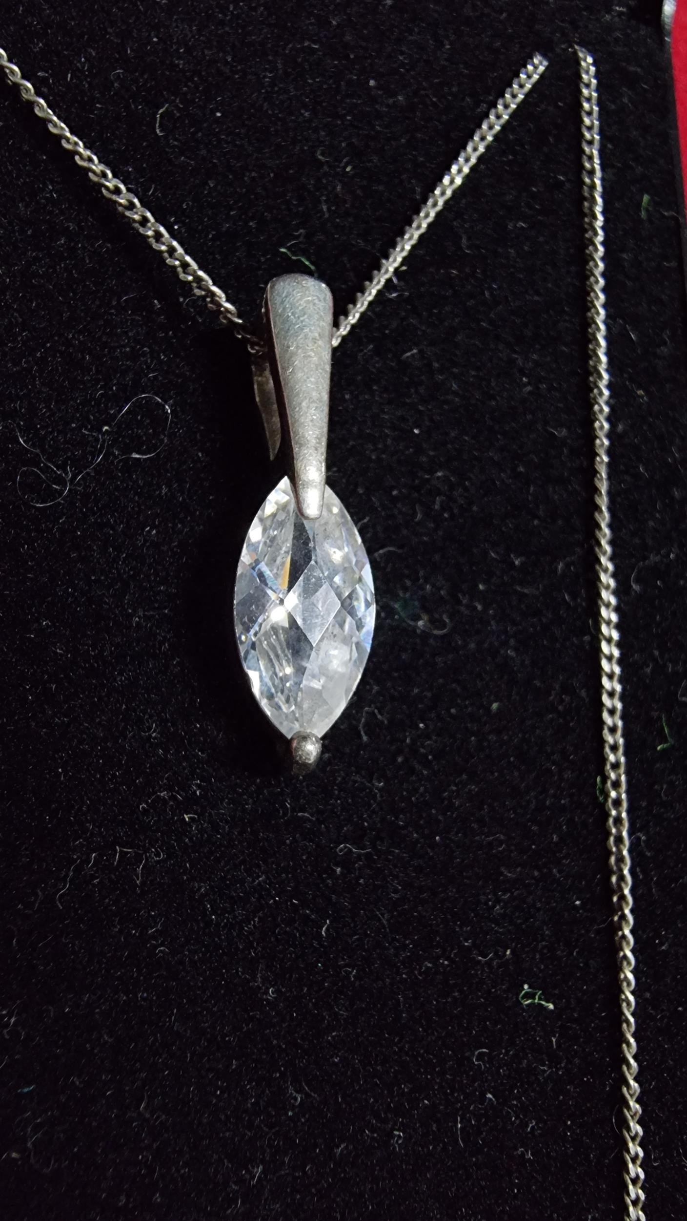 925 silver pendant inset with a large CZ stone on a 16 inch ...