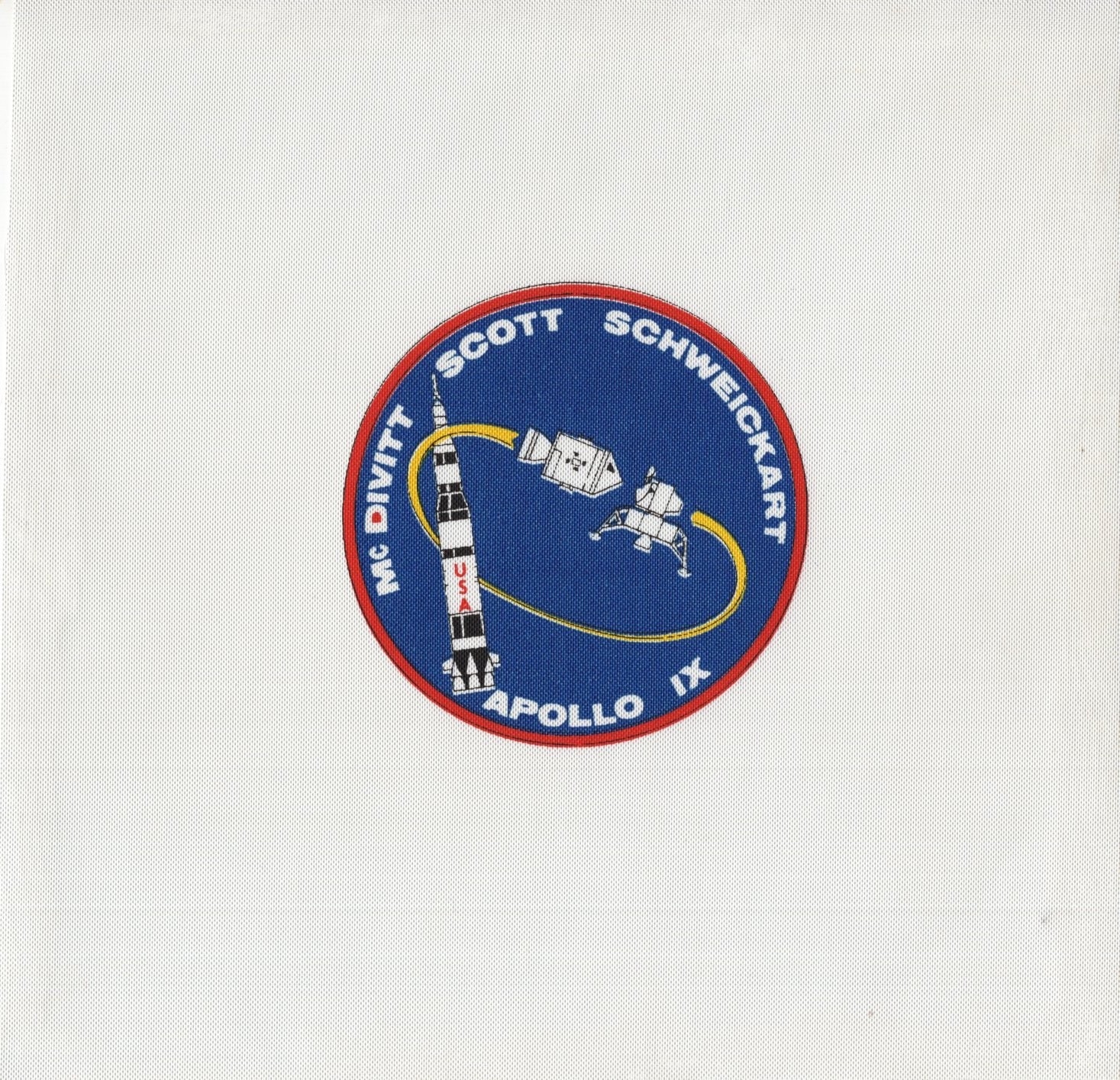 Apollo 9 astronaut Jim McDivitt's personal spare Apollo 9 mission patch uncut and sent to England by McDivitt himself, comes with original envelope, we cannot claim they are mission flown hence low price.