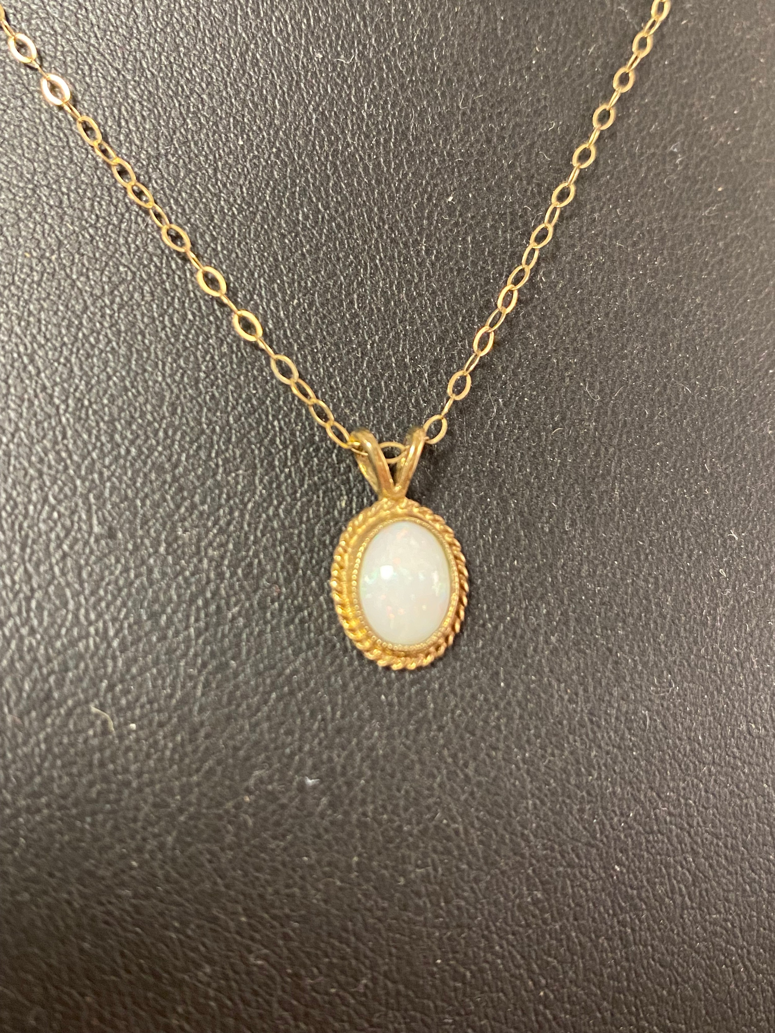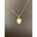 A 9ct gold pendant, set with an oval opal, to 9ct chain -