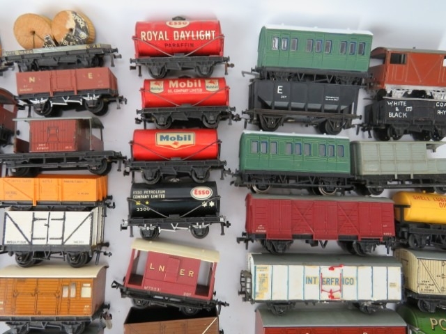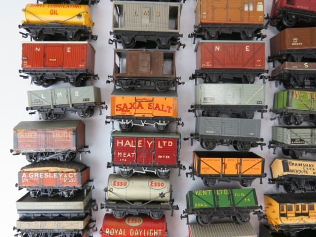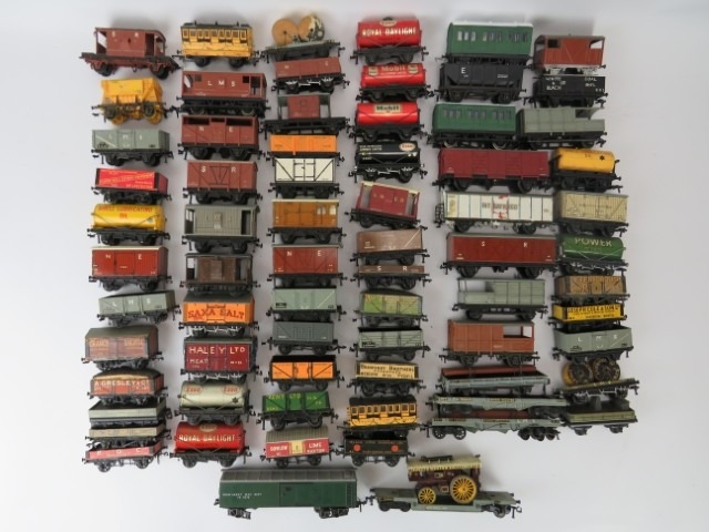A large collection of vintage 00 Gauge train rolling stock. (70 items)