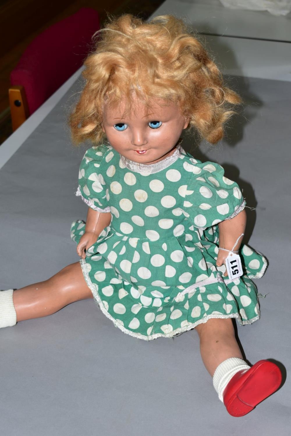 A LARGE COMPOSITION DOLL, nape of neck marked 'FP22', sleeping eyes, open mouth showing four teeth, jointed body, working voice box, approximate height 65cm, some marking and wear