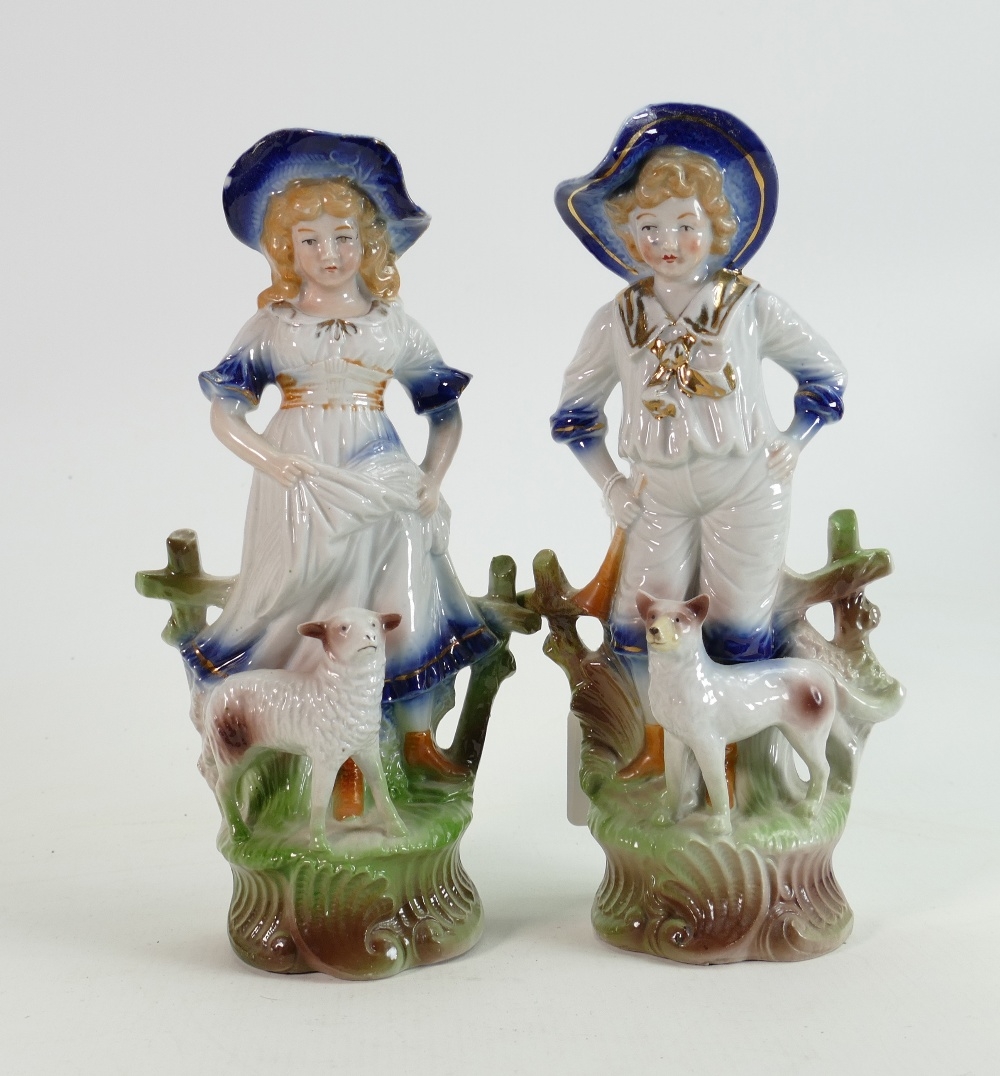 19th century German Shepherd and Shepherdess figures: Pair measuring 25cm high approx. (2)