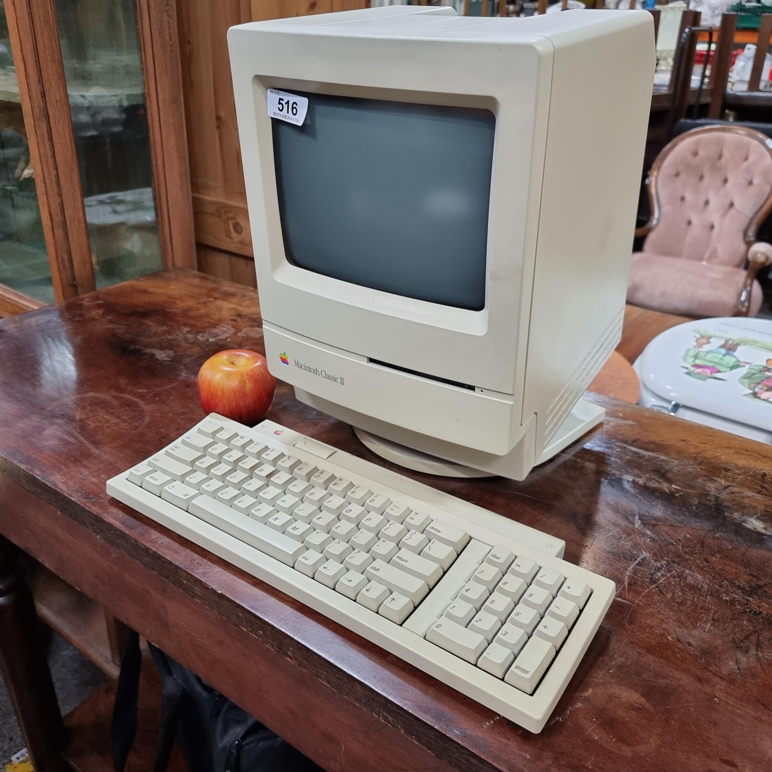 Apple Macintosh Classic II monitor and Macintosh Keyboard II originally released in 1991. A great example of '90s technology in good condition and would make a good collector's item. Has a bag but no cables. But looks in very good condition.