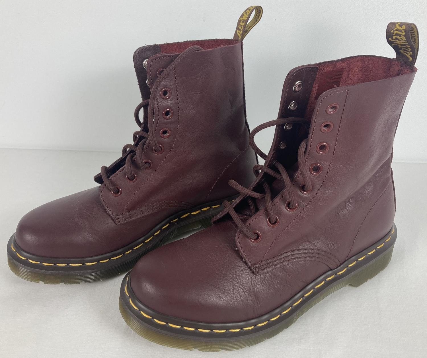 A pair of Cherry Red leather Pascal Dr Martens ankle boots. Size 5, unboxed. In as new condition.