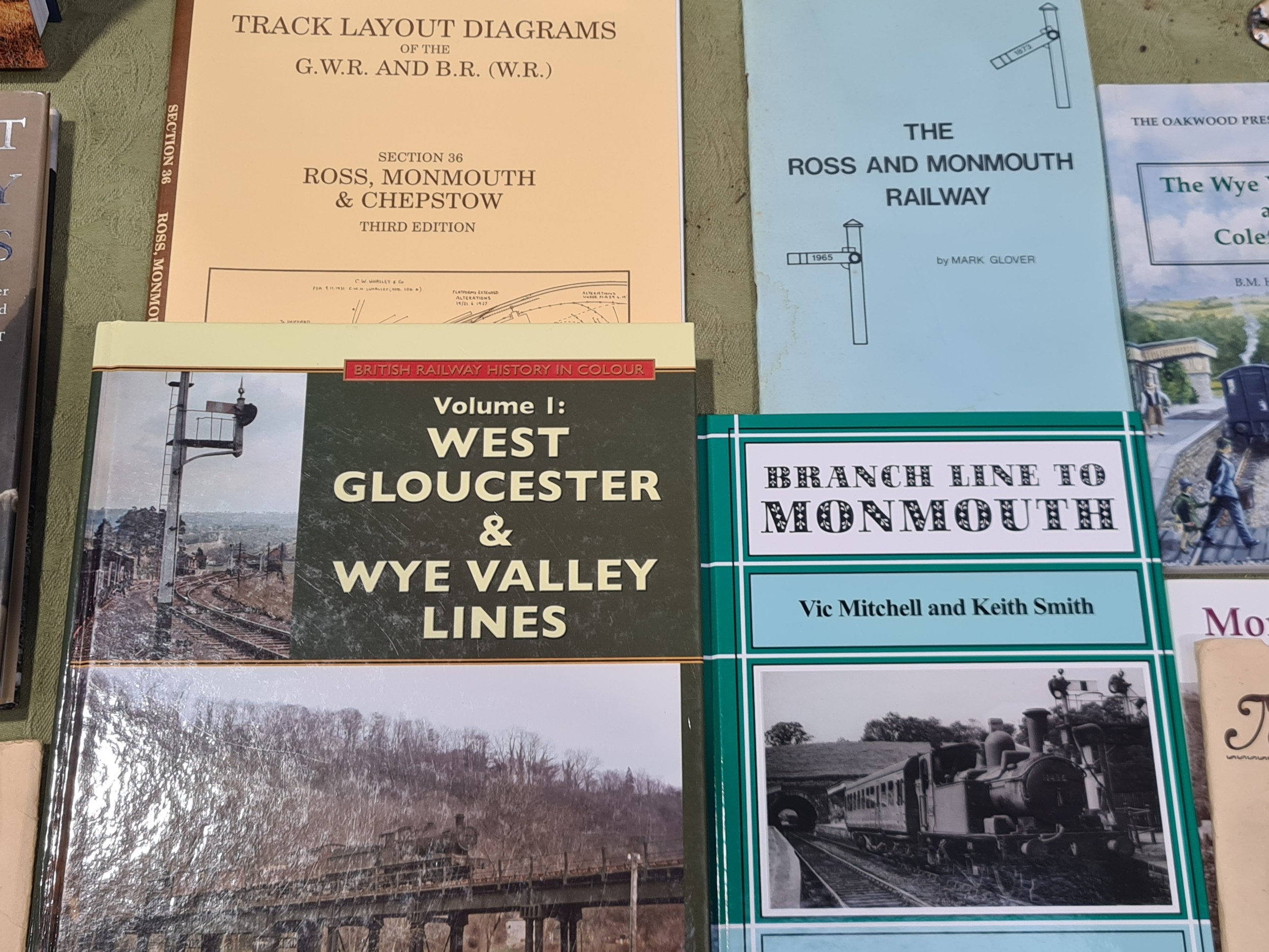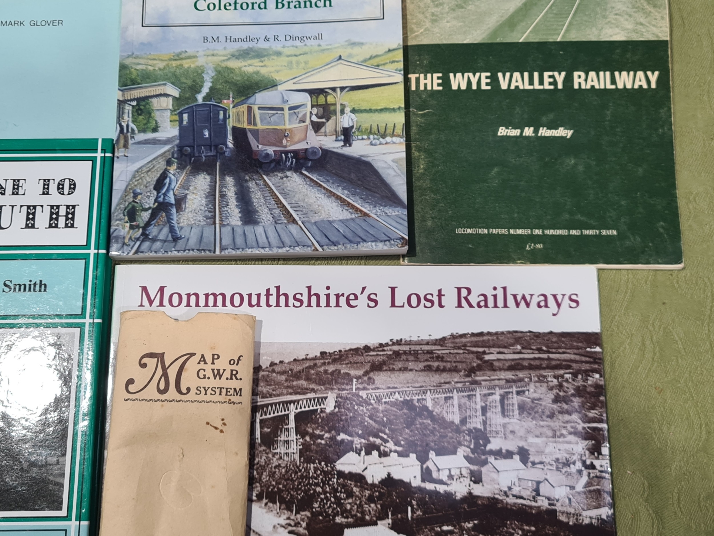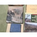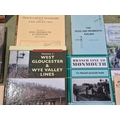 A box of Railway Books including PARKHOUSE, Neil 'West Gloucester & Wye Valley Lines' Vol 1, COOKE, R.A. 'Track Layout Diagrams of the G.W.R. and B.R. (W.R.) Section 36 Ross, Monmouth & Chepstow', 3rd Edition, MITCHELL & SMITH, 'Branch Line to Monmouth', HANDLEY & DINGWALL 'The Wye Valley Railway & the Coleford Branch', etc., together with an ASLEF 1977 Conference Booklet in leather Satchel, an original Railway 'Gentleman' Toilet enamel Sign, a reproduction enamel Sign and a Map of the G.W.R.