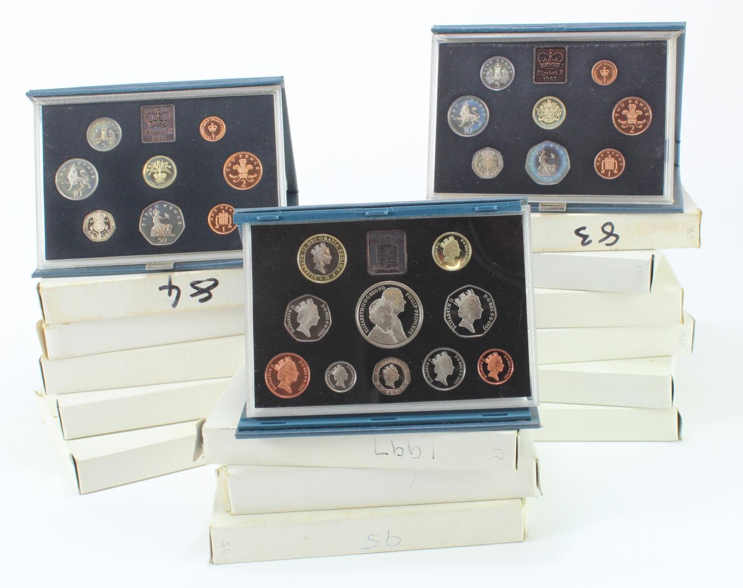 GB Proof Sets (14) 'standard blue' various 1983 to 1997, with cardboard envelopes.