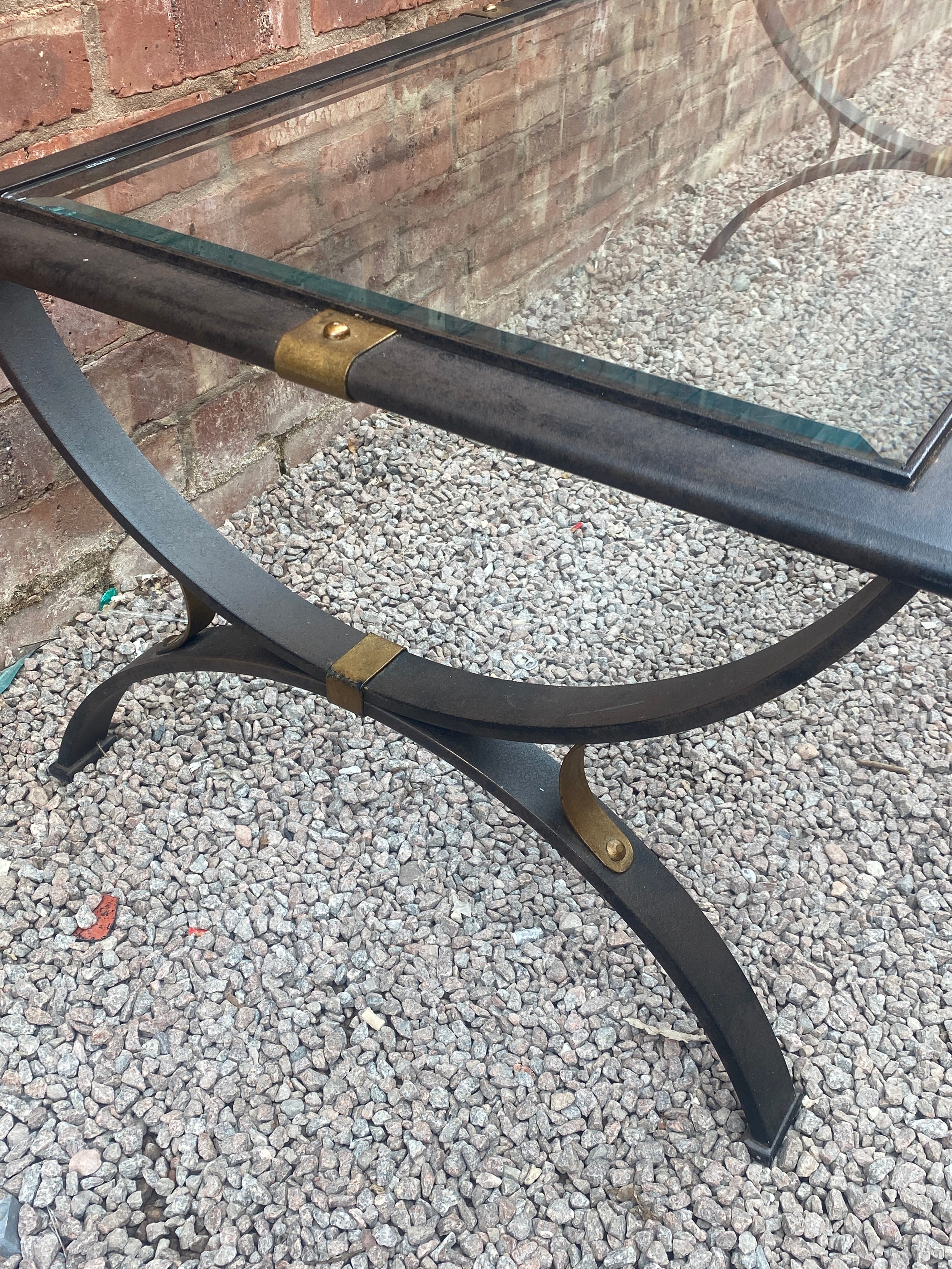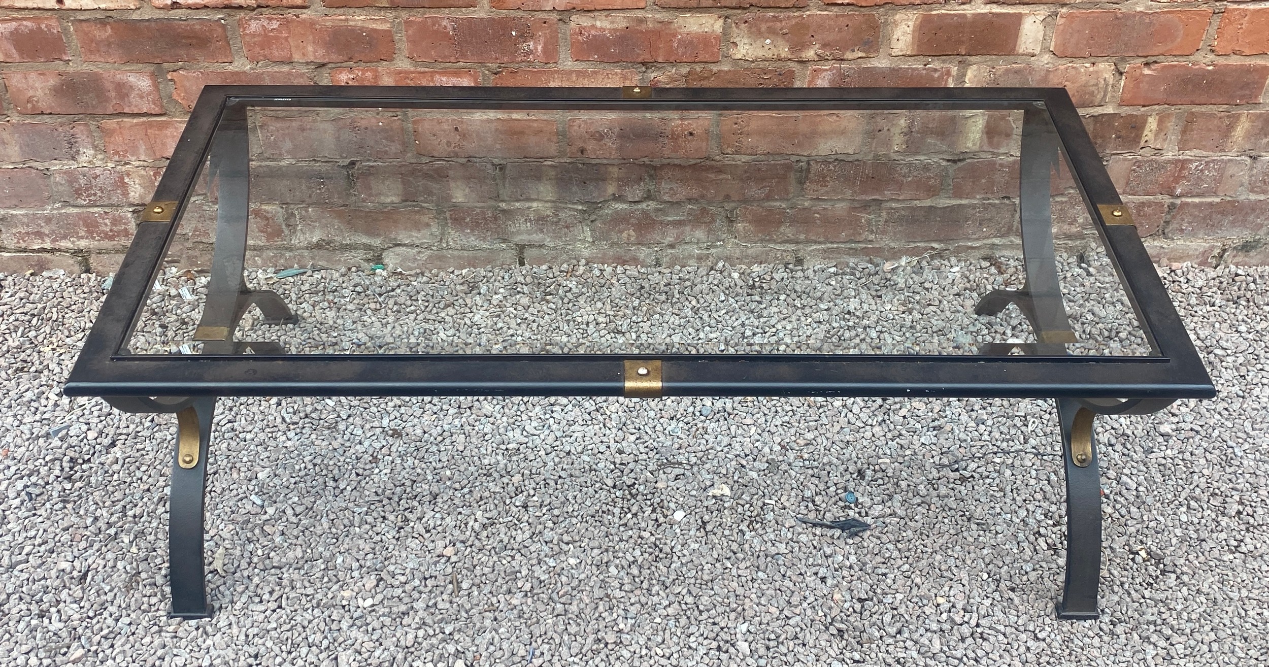 BLACK WROUGHT IRON GLASS TOPPED COFFEE TABLE